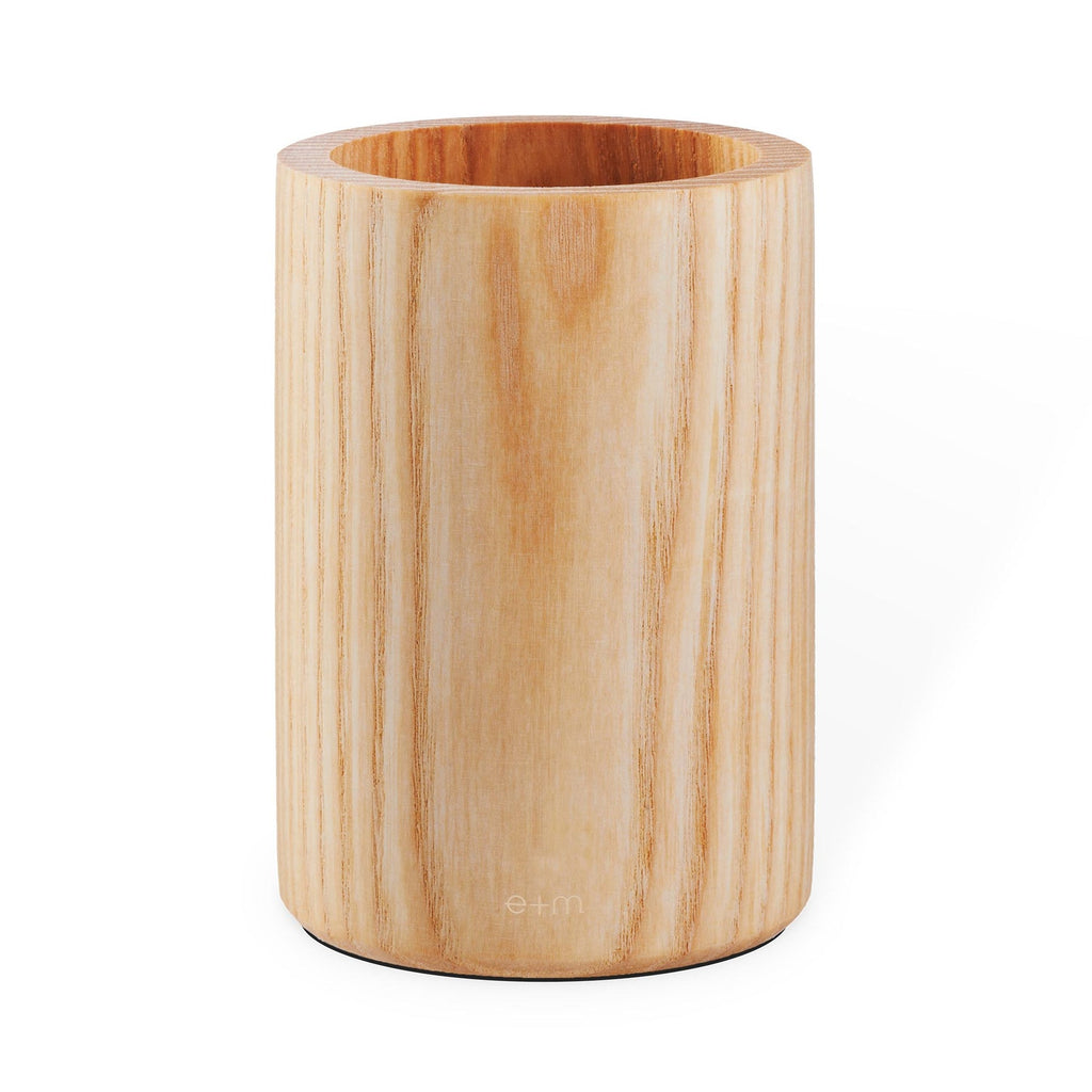 Der POTBELLY Stiftbecher von e+m Holzprodukte vereint zeitloses Design mit nachhaltiger Funktionalität. Gefertigt aus massivem, FSC®-zertifiziertem Buchen- oder Eschenholz, bietet er eine natürliche oder elegante schwarze Ausführung. Die schlichte Formensprache macht ihn zum idealen Begleiter in jedem Büro oder Home-Office.