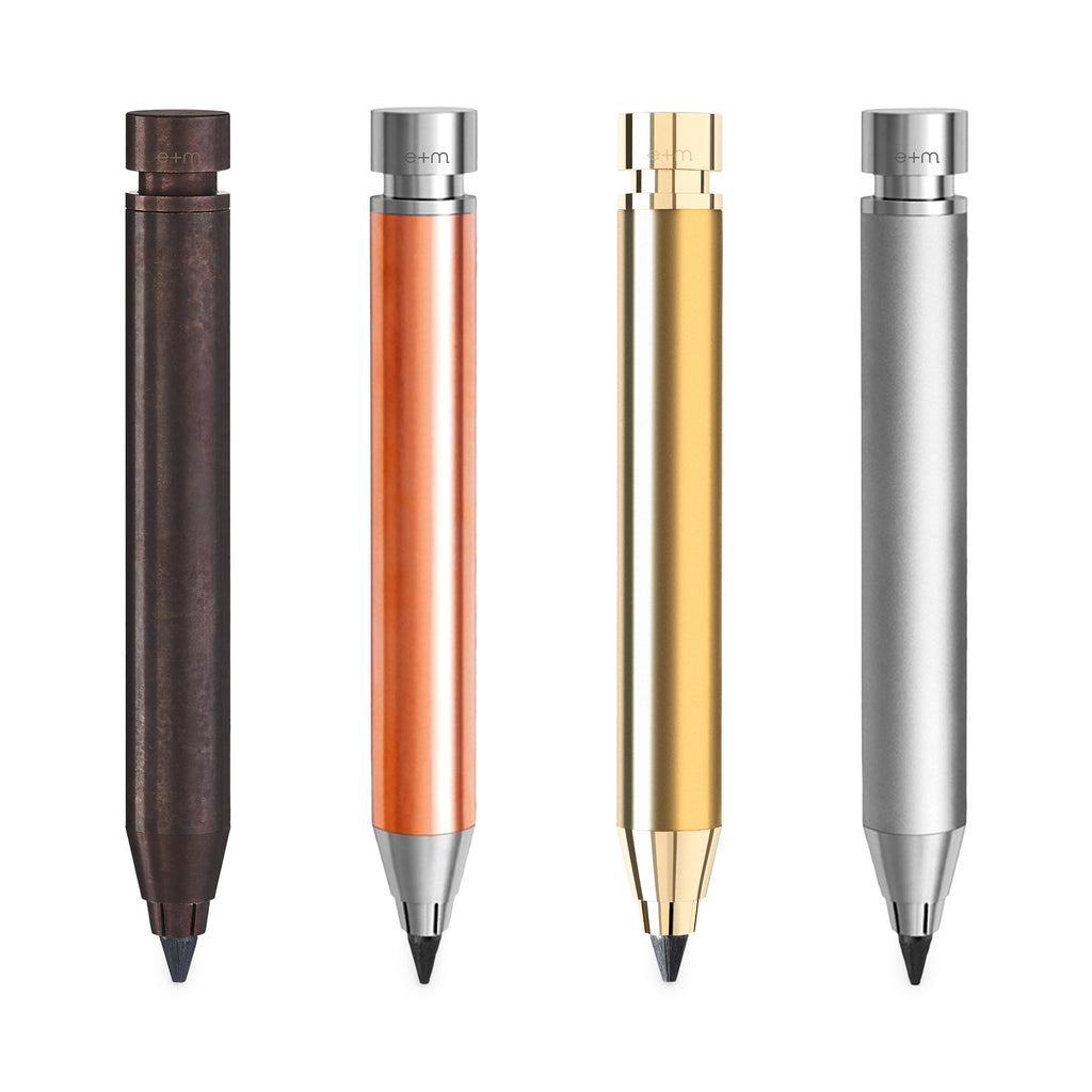 Der GRAPHIC METAL Fallminenstift aus der METAL-Serie von e+m ist ein Meisterwerk der Präzision und Handwerkskunst. Gefertigt aus edlen Metallen wie Messing, Aluminium und Kupfer, bietet er eine robuste und langlebige Konstruktion, die durch ihre puristische Formsprache besticht.