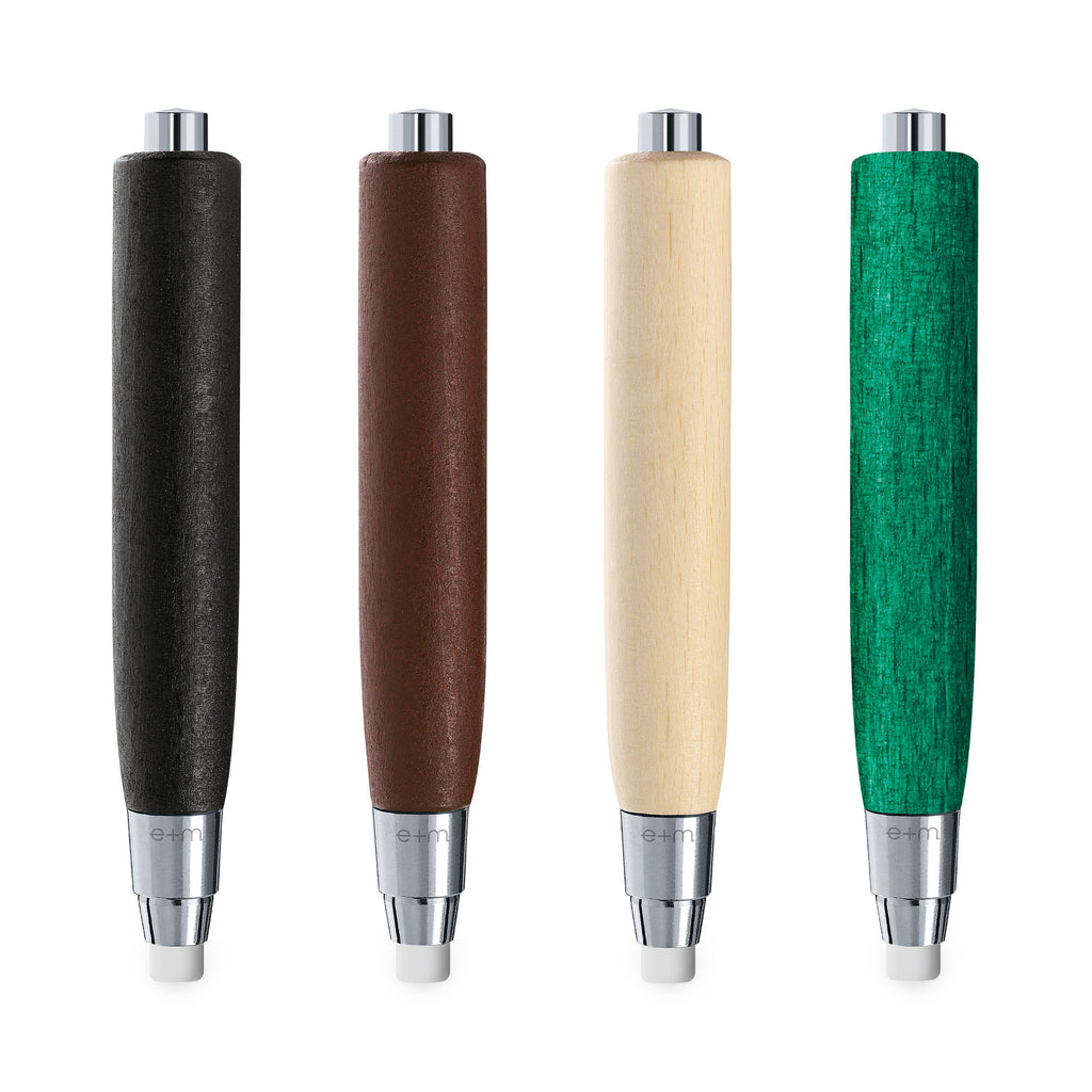 Der RUBBERMAN von e+m Holzprodukte GmbH ist ein exquisiter Fallminen-Radierer, der durch seine massive Bauweise aus FSC®-zertifiziertem Buchenholz besticht. Diese nachhaltige Materialwahl sorgt nicht nur für eine natürliche Haptik, sondern auch für eine bemerkenswerte Langlebigkeit.