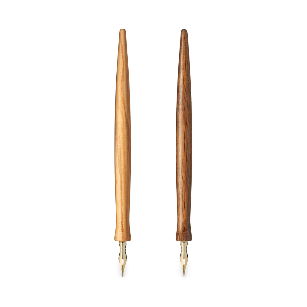 Der e+m CURVE Federhalter vereint traditionelle Handwerkskunst mit modernem Design. Gefertigt aus massivem Holz, bietet er die Wahl zwischen charaktervoller Eiche im antiken Finish und edler Olive in natürlicher Ausführung. Die goldfarbene Schreibfeder ergänzt das luxuriöse Erscheinungsbild.