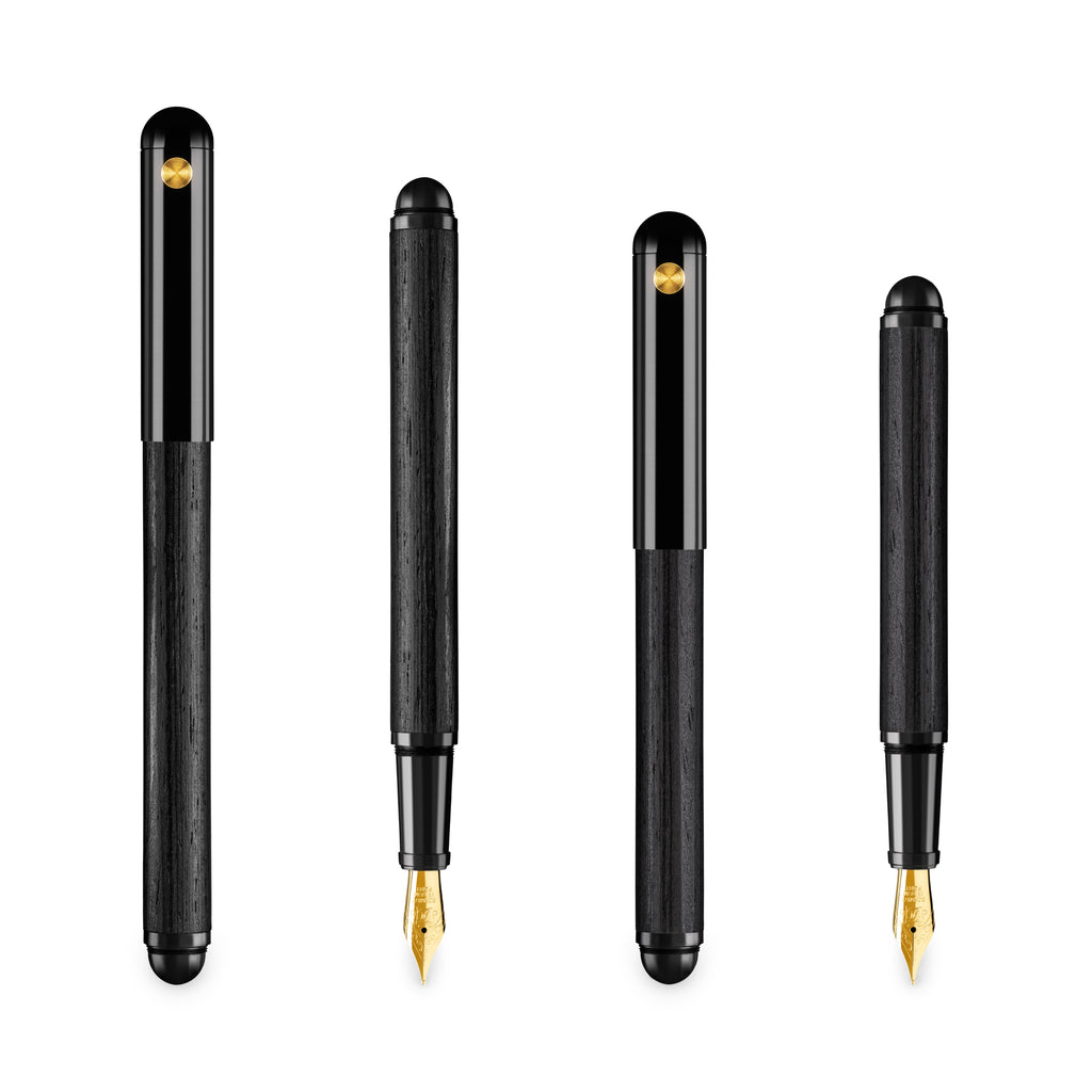 Der CONTRACT BLACK Füllfederhalter von e+m ist ein Meisterwerk deutscher Handwerkskunst, das die Eleganz von tiefschwarzem Eichenholz mit der Präzision von Messingkomponenten vereint. Die Schwarzchrom-Auflage und die vergoldete Schmidt-Iridium-Feder sorgen für ein luxuriöses Schreibgefühl.