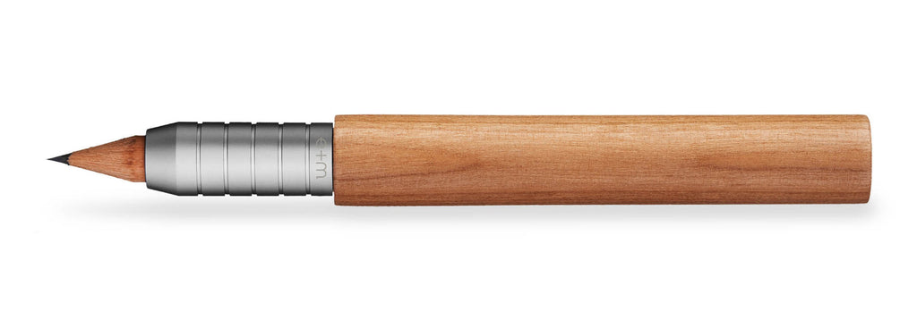 Entdecken Sie das exquisite Bleistiftverlängerer-Set von e+m Holzprodukte GmbH, das in zwei edlen Ausführungen erhältlich ist: naturbelassene Wildkirsche und elegante schwarze Buche. Jedes Set wird aus hochwertigem Massivholz gefertigt und mit einem robusten Metall-Schraubring versehen, der für einen sicheren Halt sorgt.