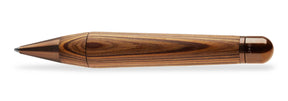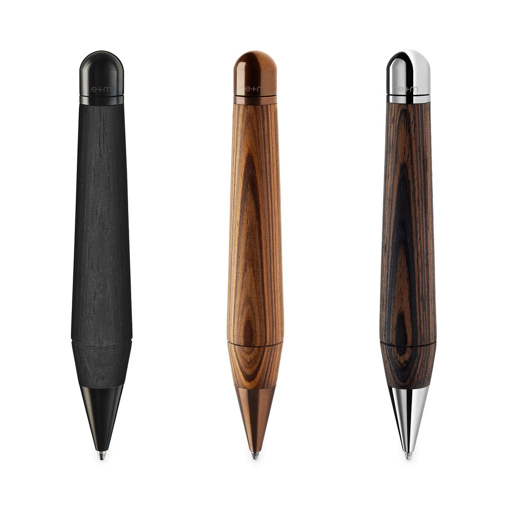 Der DRAKE Drehkugelschreiber von e+m Holzprodukte GmbH vereint edles Design mit hochwertiger Handwerkskunst. Der Korpus aus Massivholz, wahlweise in Zebrano oder Blackwood, verleiht jedem Exemplar eine einzigartige Maserung und Haptik. Die langlebige Messing-Drehmechanik ist in den Oberflächen vintage, vernickelt oder schwarz erhältlich und sorgt für ein geschmeidiges Schreiberlebnis.