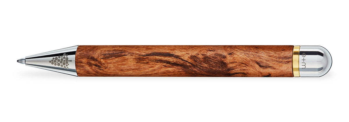 Der GRAPEVINE Kugelschreiber von e+m ist ein Meisterwerk deutscher Handwerkskunst, gefertigt aus handverlesenem Rebholz alter Riesling-Weinstöcke. Dieses seltene Material, gewonnen von den Steillagen des Rheinufers, verleiht jedem Schreibgerät eine einzigartige, charaktervolle Maserung.