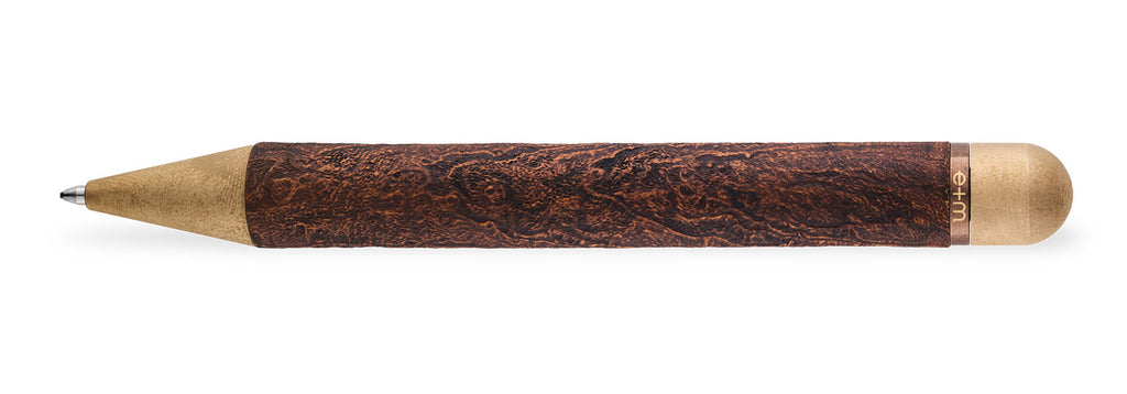 Der e+m Kugelschreiber PIPE vereint die Eleganz des seltenen Bruyère-Holzes mit der robusten Anmutung von Messing. Dieses Schreibgerät ist ein Meisterwerk der Handwerkskunst, das die sinnliche Haptik und Ruhe klassischer Pfeifen in ein modernes Designobjekt überträgt.