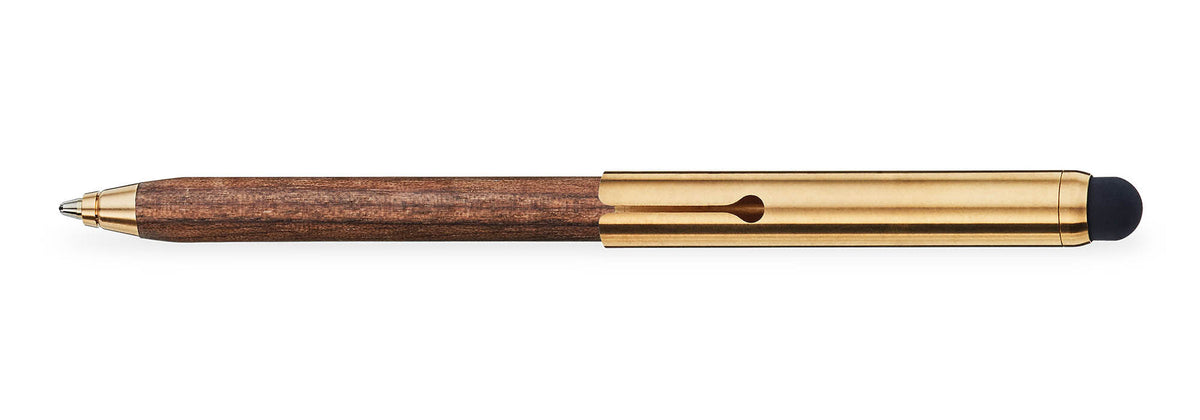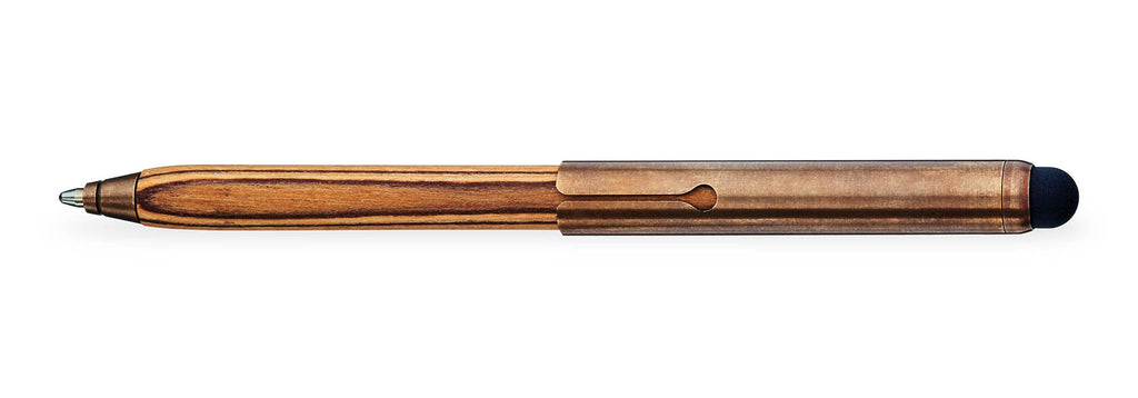 Der STYLE.US Kugelschreiber von e+m Holzprodukte GmbH vereint die natürliche Schönheit von Massivholz mit der Eleganz einer präzise gefertigten Messing-Kappe. Wählen Sie aus edlen Holzarten wie Walnuss, Zebrano, Wildkirsche und Wenge, die jeweils mit einzigartigen Metalloberflächen von roh bis verkupfert kombiniert werden.