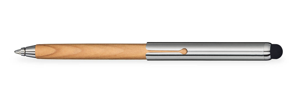 Dieses kompakte Schreibgerät bietet nicht nur ein angenehmes Schreibgefühl, sondern auch eine integrierte Stylus-Funktion für die Touch-Bedienung auf Smartphones und Tablets. Der exklusive Präzisionsadapter ermöglicht die Nutzung handelsüblicher D1-Wechselminen, während die personalisierbare Werbefläche Raum für individuelle Gravuren bietet.