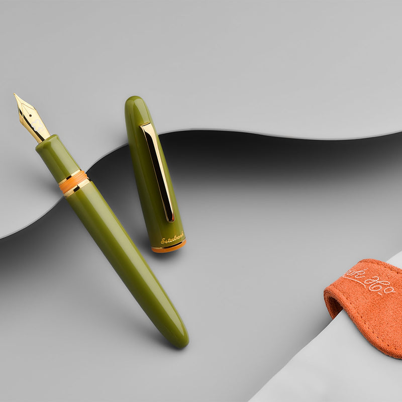 Funktion und Stil vereint Ausgestattet mit einer präzisen Edelstahlfeder, die in verschiedenen Strichbreiten von EF bis B erhältlich ist, bietet der Estie ein geschmeidiges und fließendes Schreiberlebnis. Der sanfte Kolbenmechanismus ermöglicht eine einfache Befüllung und garantiert eine lange Lebensdauer. Für Liebhaber besonders präziser und kreativer Schriften sind auch Stub- und Journaler-Federn verfügbar.