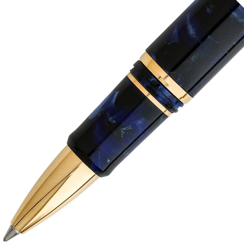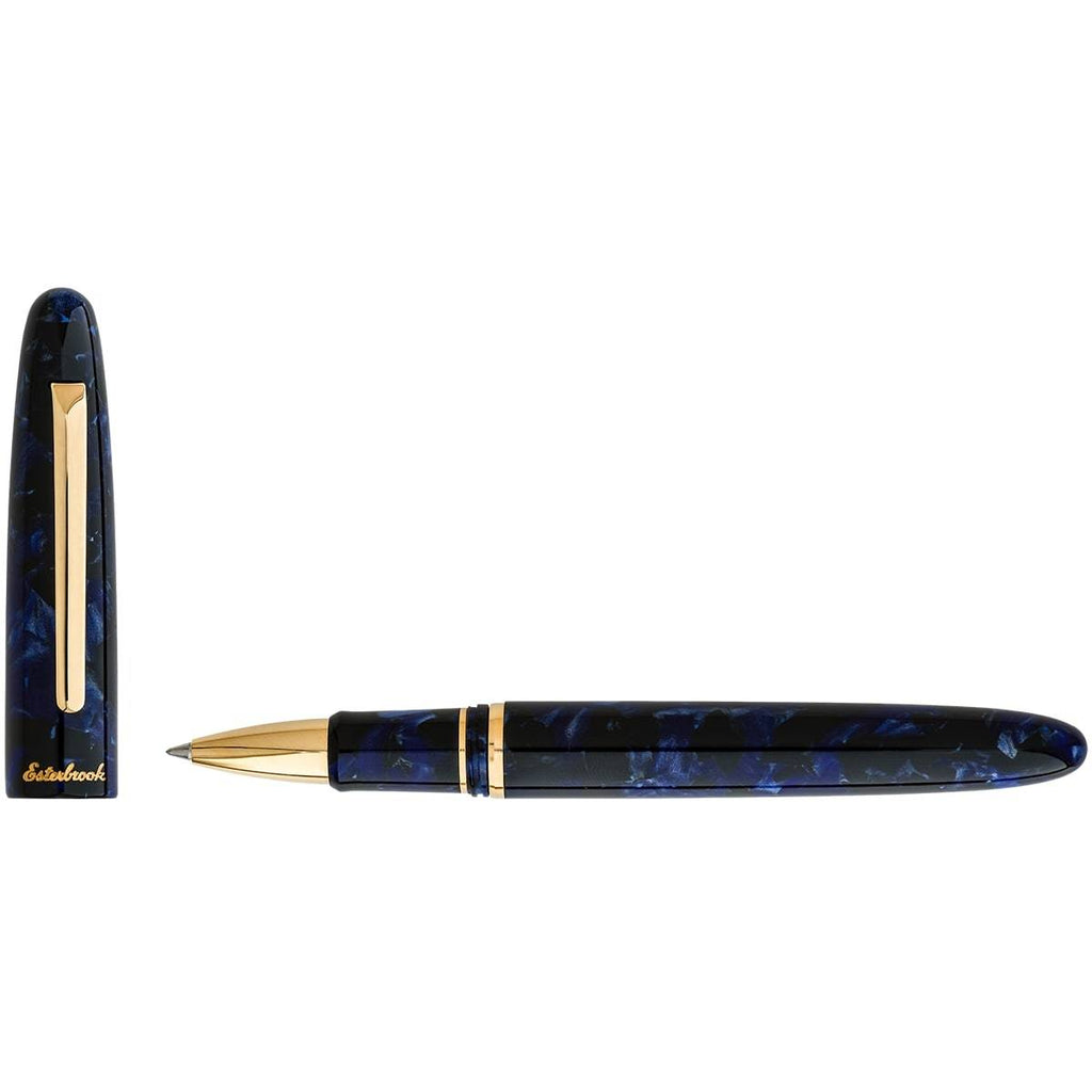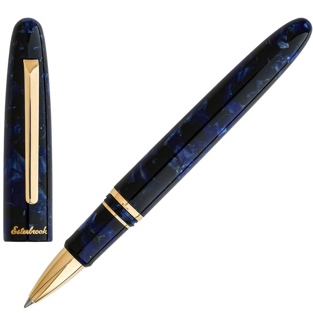 Die dunkelblaue Farbe, ergänzt durch goldene Zierelemente und einem immerwährenden Design: Das ist der Esterbrook Estie Tintenroller!