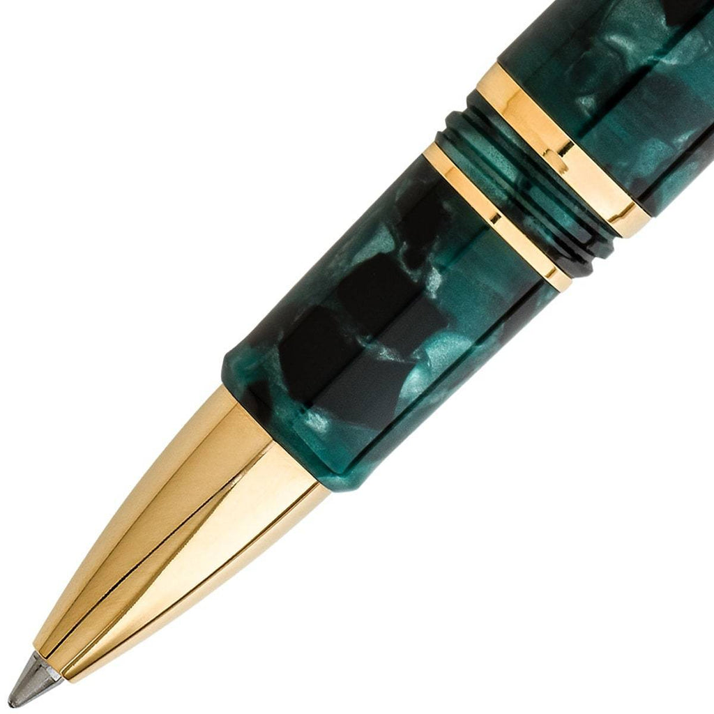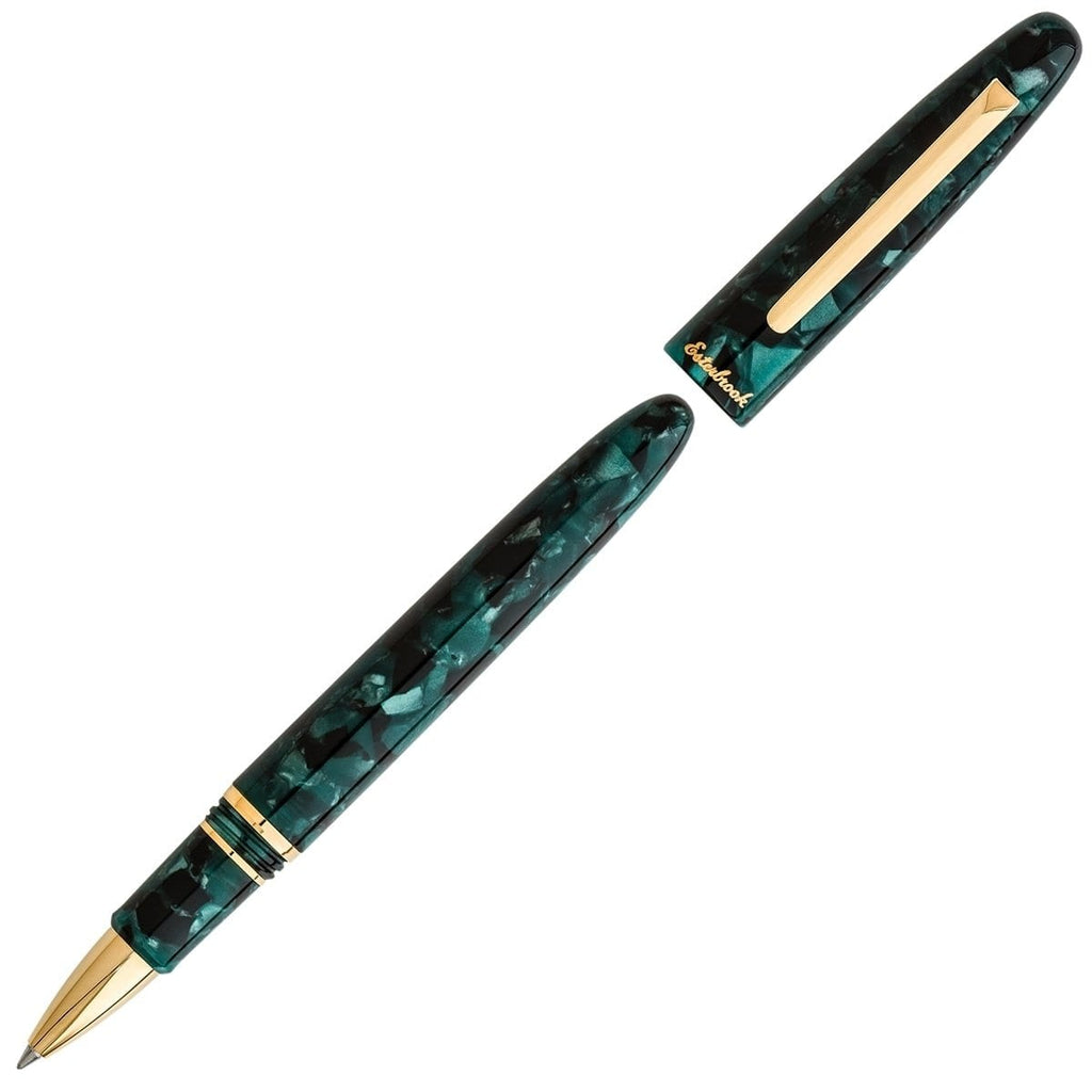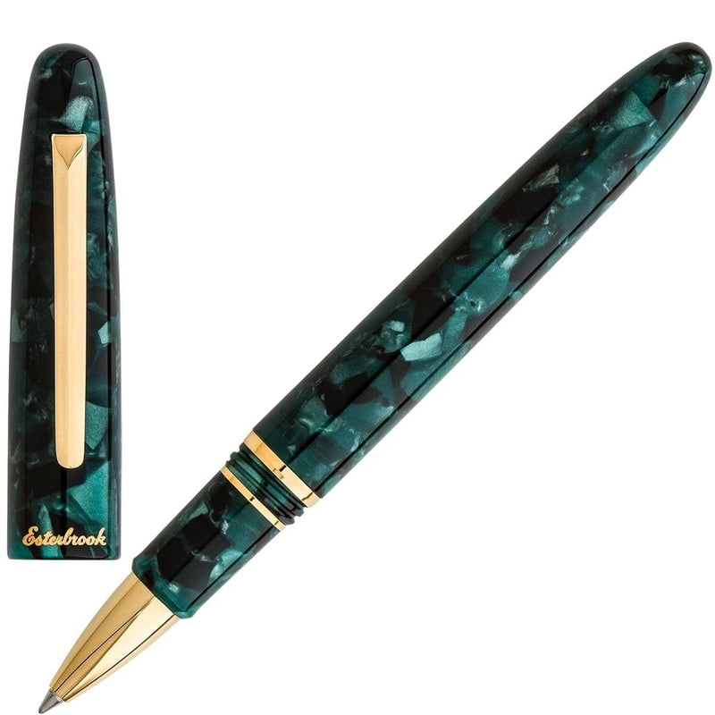 Die dunkelgrüne Farbe, goldene Zierelemente und ein klassisches Design sind Hauptmerkmale des Esterbrook Estie Rollerballs.