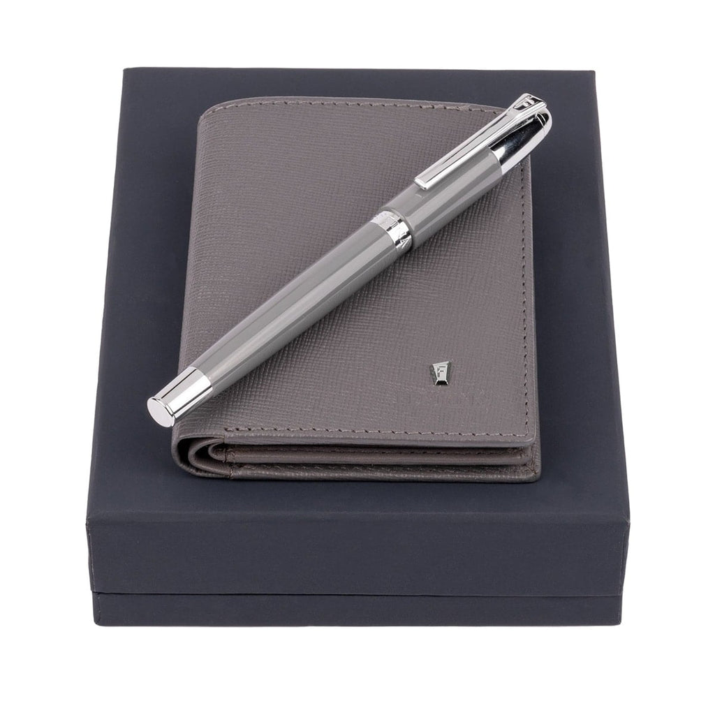 Elegantes Set: Edler Kugelschreiber & Kreditkartenetui in stilvollem Grau – perfekt für den Alltag.