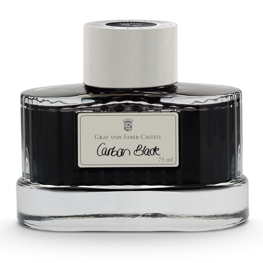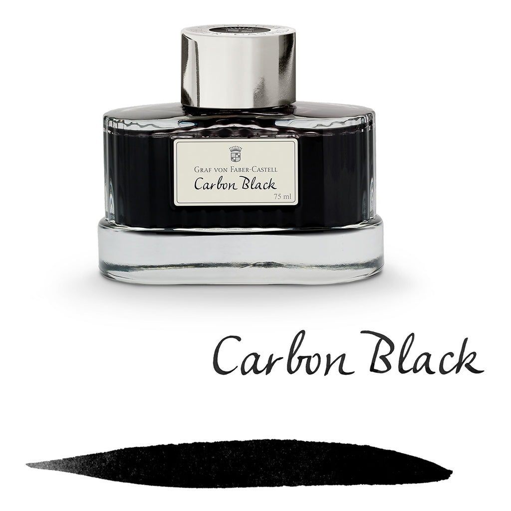 Graf von Faber-Castell Tintenglas - Die Tinte ist in einem attraktiven Tintenglas oder als Tintenpatronen erhältlich. Die Tinte zeichnet sich aus durch ihre einzigartige Rezeptur. Die Tinte wird ohne Partikel und Ruß hergestellt. Dies hat den Vorteil, dass der Tintenleiter nichtmehr verstopft. Ebenfalls hat die Tinte eine der höchsten Farbintensitäten und ist dokumentenecht (bis auf Royal Blue). Das Tintenglas zeichnet sich durch die für die Graf von Faber-Castell Collection charakteristische feine Kannelierung aus. Der Endverbraucher kann zwischen vielen von der Natur inspirierten Farben: Carbon Black, Cobalt Blue, Hazelnut Brown, Stone Grey, Moss Green, Garnet Red, Midnight Blue, Deep Sea Green, Royal Blue, Electric Pink, Turquoise oder Burned Orange wählen. Sie zeichnen sich durch eine besondere Farbtiefe aus. Bis auf die Farbe Royal Blue sind die Tinten dokumentenecht.