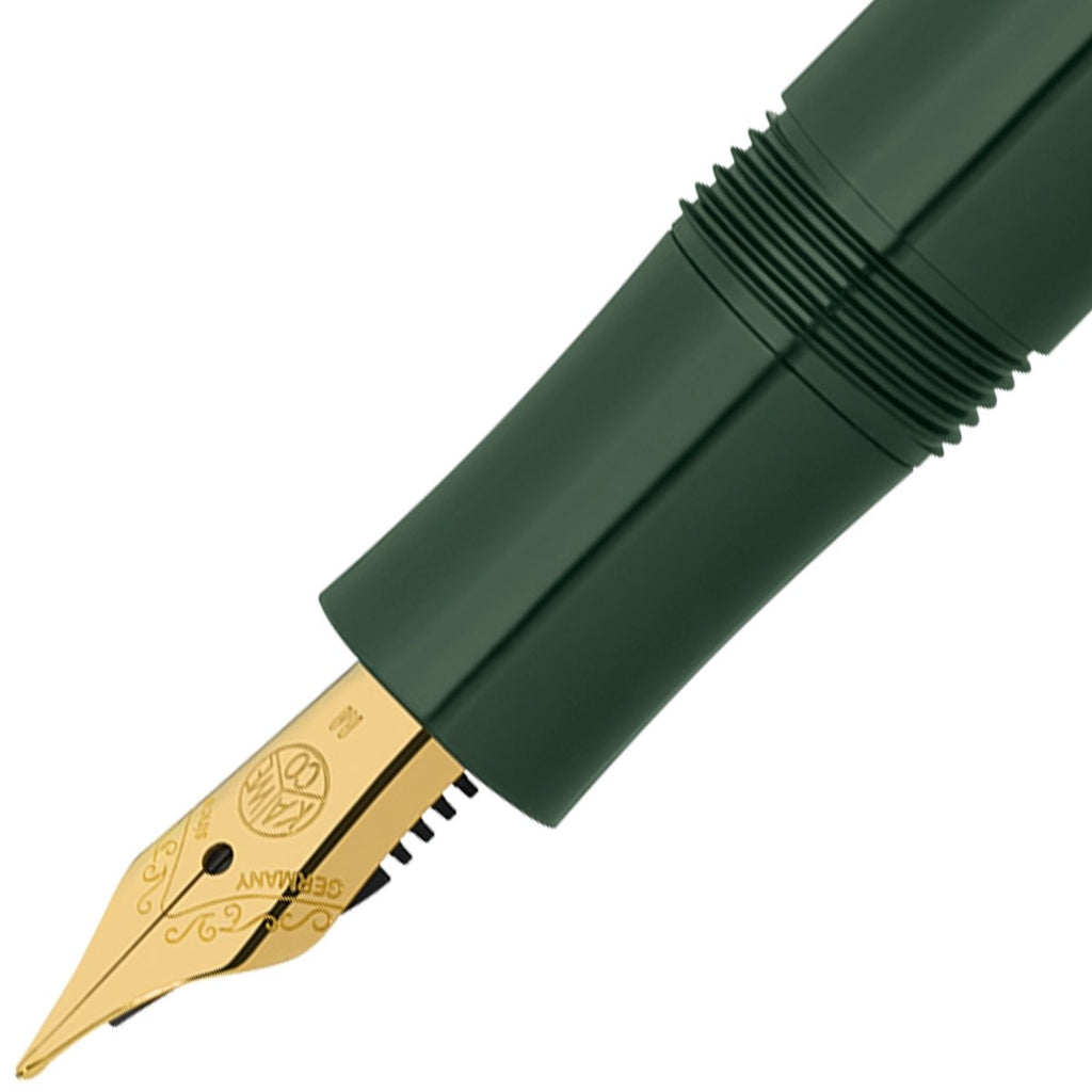 Die grüne Farbe, ergänzt durch goldene Zierelemente, ausgestattet mit einer Edelstahlfeder: Das ist der Kaweco Classic Sport Füllhalter!