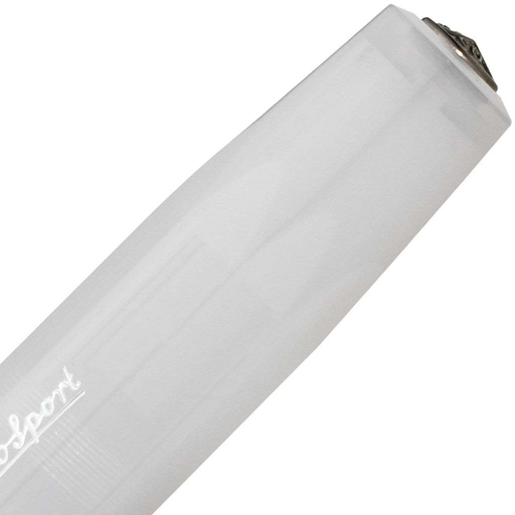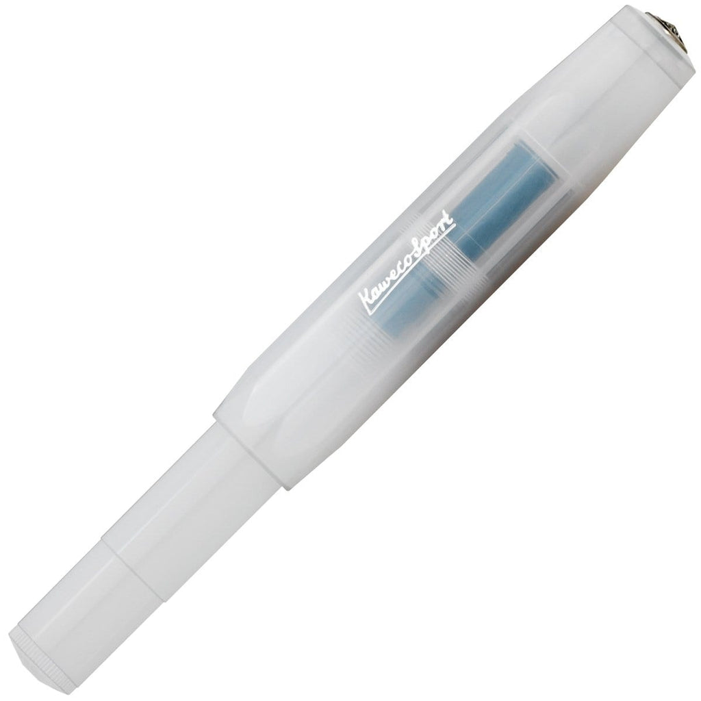 Der Kaweco Frosted Sport Füllfederhalter hat silberne Zierelemente und ist ein sogenannter Demonstrator - ein Füllhalter mit durchsichtigem Korpus.
