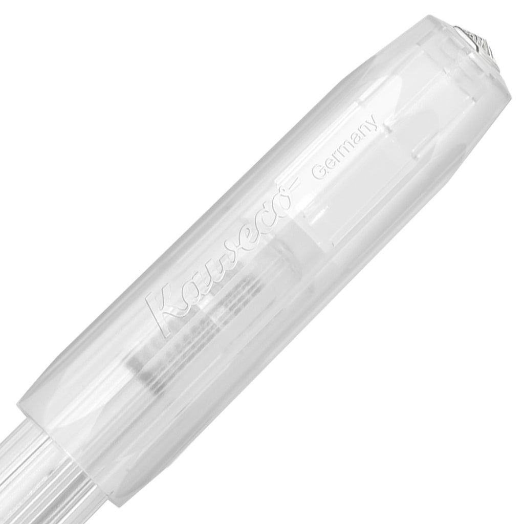 Der Kaweco Perkeo Rollerball hat silberne Zierelemente und ist ein sogenannter Demonstrator - ein Füllhalter mit durchsichtigem Korpus.