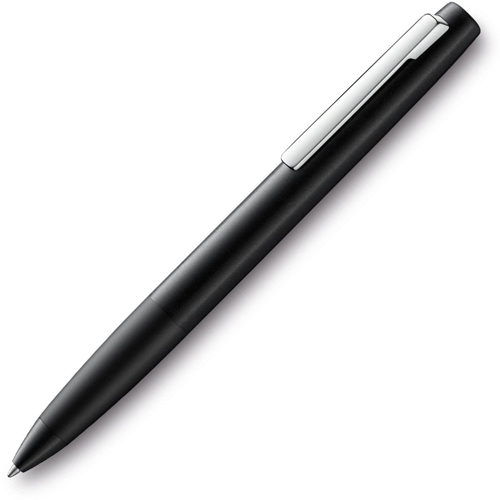 Gemäß der Bauhaus-Philosophie, die Ästhetik und Funktionalität praktisch verbindet, verkörpert der Lamy aion Grundelemtente der Avantgarde der klassischen Moderne. Dieser Kugelschreiber wird mit einem Drechmechanismus geöffnet. Für Menschen, die dazu neigen verschwitzte Hände zu haben oder einfach gerne rutschfestes Material greifen, ist das gummierte Griffstück genau richtig. Die Größe des Kugelschreibers trifft genau die Mitte und eignet sich daher für allerlei Hände und Handhaltungen. Auch was das Gewicht betrifft, ist der aion ein vortrefflicher Allrounder und für die meisten Schreiber passend.