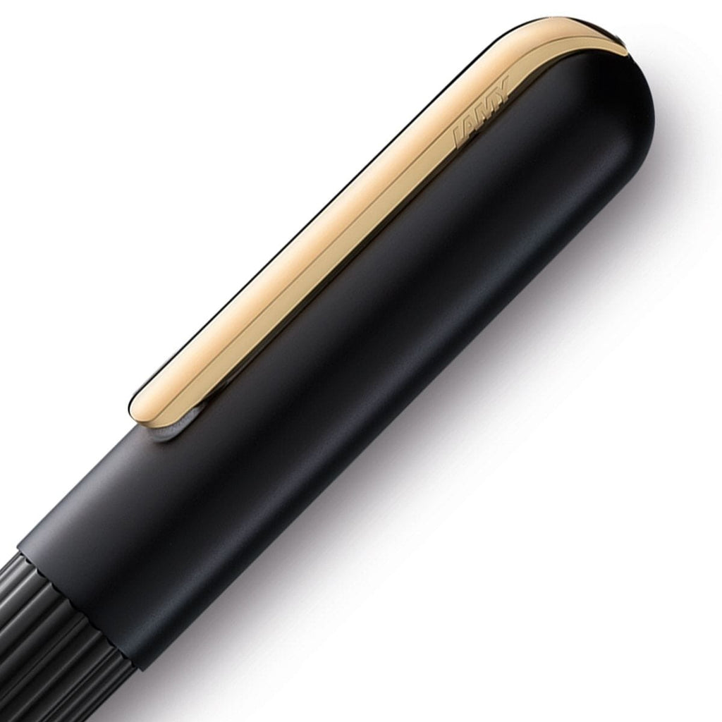 Die schwarze Farbe, goldene Zierelemente und ein Modern Classic Design sind Hauptmerkmale des Lamy Imporium BlkAu Kugelschreibers.