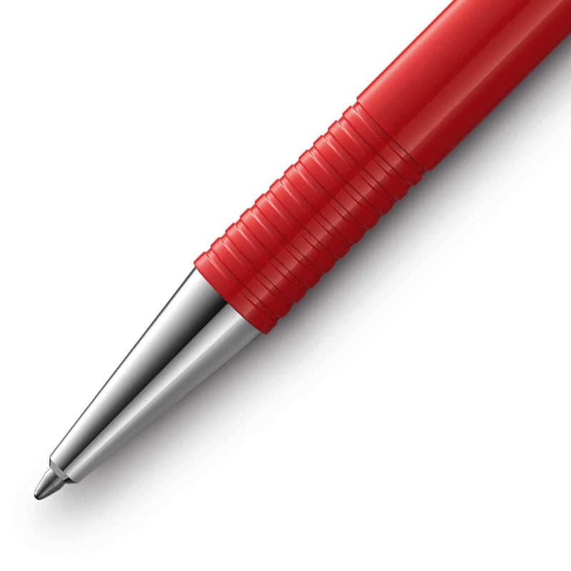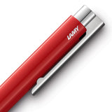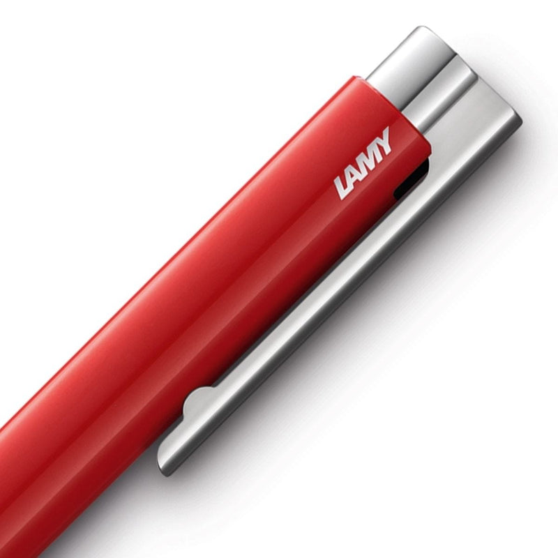 Die rote Farbe, ergänzt durch silberne Zierelemente und einem modernen Design: Das ist der Lamy Logo M+ Kugelschreiber!