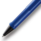 Die blaue Farbe, ergänzt durch silberne Zierelemente und einem Design im Bauhausstil: Das ist der Lamy Safari Kugelschreiber!