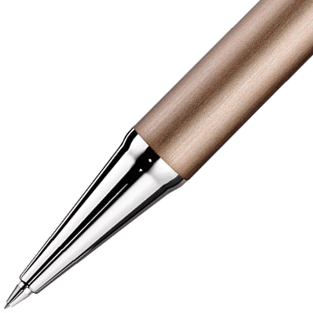Der Otto Hutt Design 04 Bleistift in braun wird mit platinierten Zierelementen vervollständigt und hat ein Design im Bauhausstil.