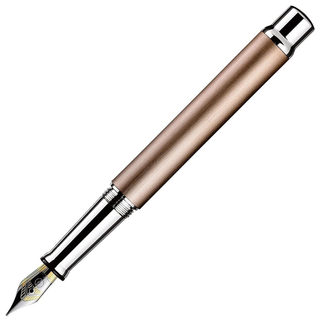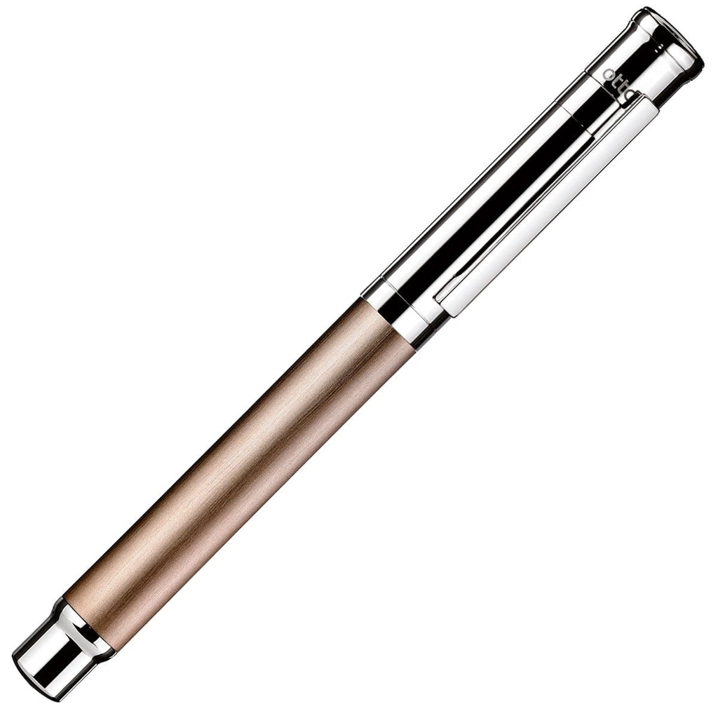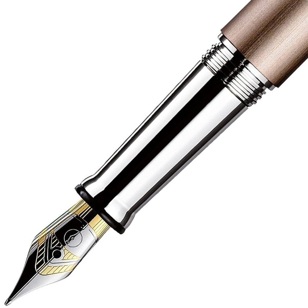 Der Otto Hutt Design 04 Füller in braun hat platinierte Zierelemente und ein Design im Bauhausstil.