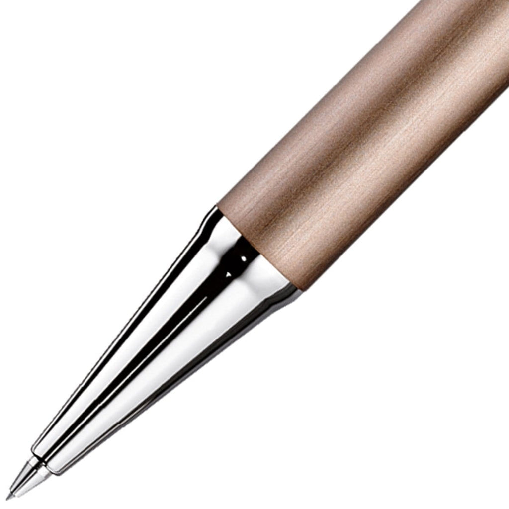 Die braune Farbe, ergänzt durch platinierte Zierelemente und einem Design im Bauhausstil: Das ist der Otto Hutt Design 04 Kugelschreiber!