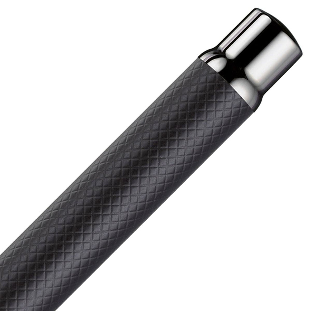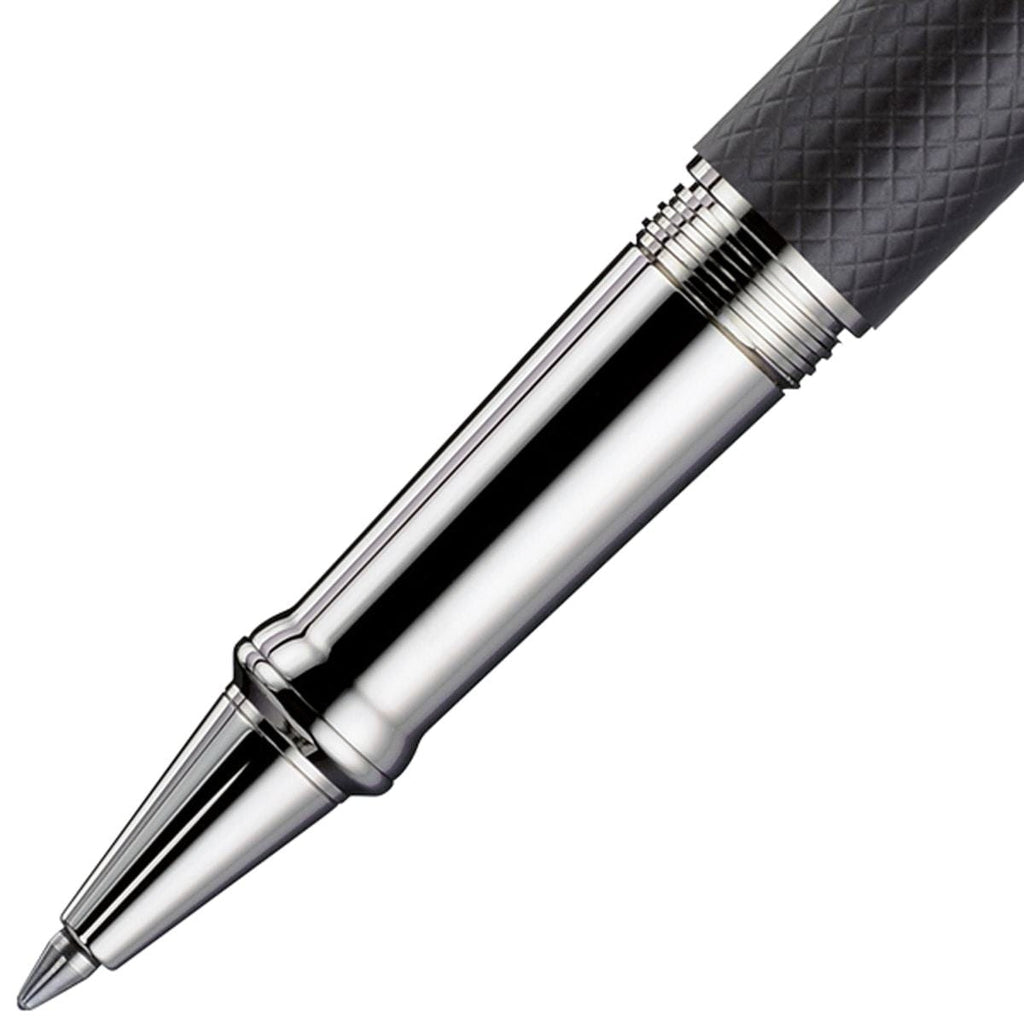 Der Otto Hutt Design 04 Tintenroller in schwarz wird mit platinierten Zierelementen vervollständigt und hat ein Design im Bauhausstil.