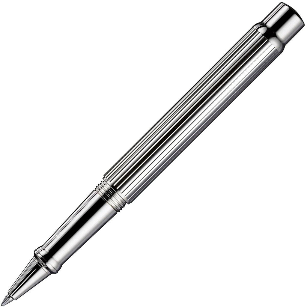 Die silberne Farbe, ergänzt durch platinierte Zierelemente und einem Design im Bauhausstil: Das ist der Otto Hutt Design 04 Tintenroller!