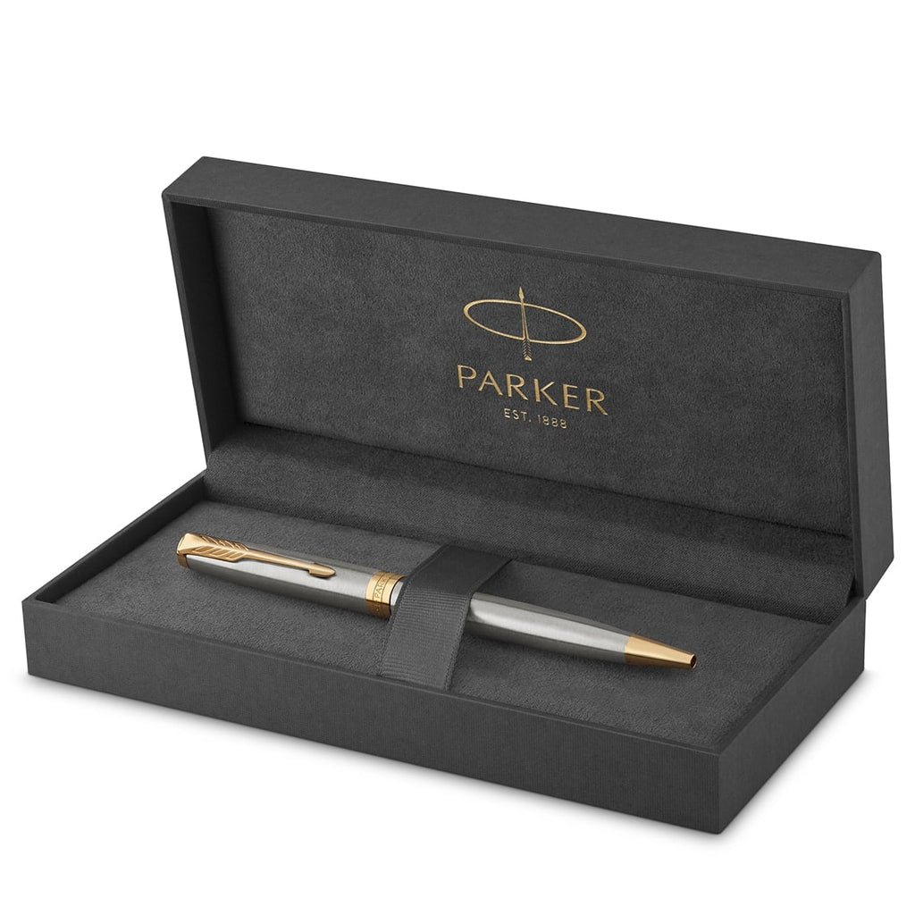 Genießen Sie mit dem makellosen und raffinierten Parker Sonnet Füllfederhalter ein besonders schönes Schreibgefühl. Das Schreibgerät besteht aus 17 Einzelteilen. Die Kappe sowie der Schaft sind in edlem Schwarz lackiert, der Clip sowie die Zierteile setzen dank der goldenen Beschichtung edle Akzente. Die Einzelteile wurden sorgfältig zusammengesetzt und auf makellose Qualität geprüft, um hochpräzises Schreiben und höchsten Schreibkomfort zu gewährleisten. Der Sonnet ist in verschiedenen Designs, unter anderem mit den einzigartigen Ciselé-Mustern, erhältlich und steht für pure Schönheit sowie die weltbekannte Handwerkskunst von Parker. Das Schreibgerät bietet bei jeder Gelegenheit höchsten Schreibkomfort und wird in einer attraktiven Parker Premium-Geschenkbox geliefert.