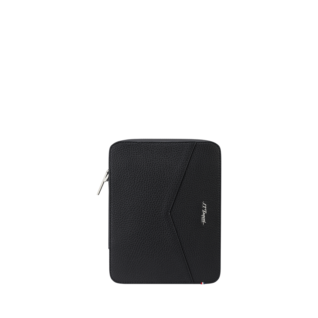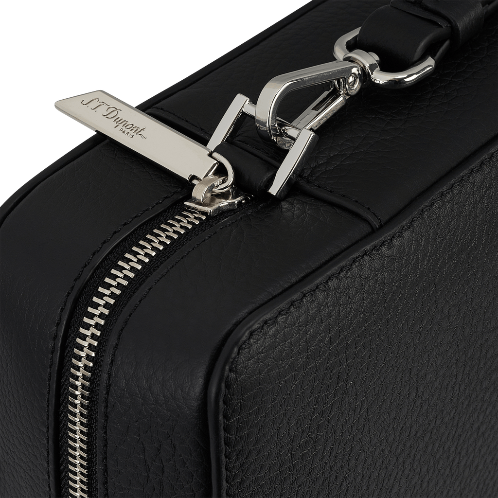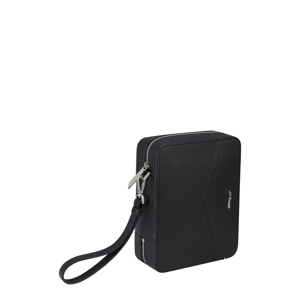Die Clutch aus genarbtem Leder von S.T. Dupont verkörpert schlichte Eleganz und Funktionalität. Gefertigt aus hochwertigem, schwarzem Leder, bietet sie eine griffige Haptik und ist besonders kratzunempfindlich. Diese Pochette ist die ideale Wahl für Zigarrenliebhaber, die ihre Accessoires stilvoll transportieren möchten.