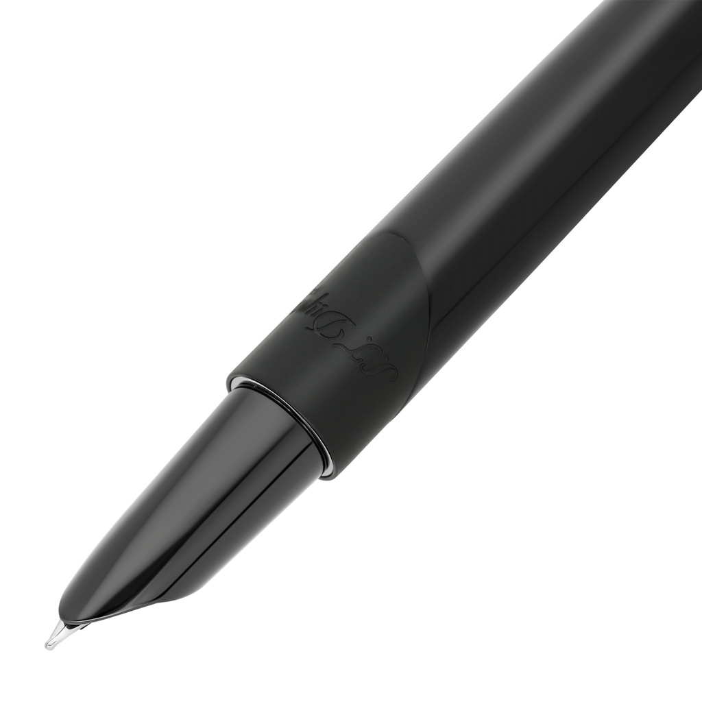 Der S.T. Dupont Défi Füllfederhalter Millennium vereint moderne Eleganz mit technischer Raffinesse. Sein Metallkorpus, veredelt mit einer Kombination aus hochglänzendem und mattem Lack, verleiht dem Schreibgerät eine zeitgemäße, sportliche Ästhetik. Die klare Linienführung und die monochrome Dual-Finish-Optik unterstreichen die dynamische Formensprache der Défi-Kollektion.