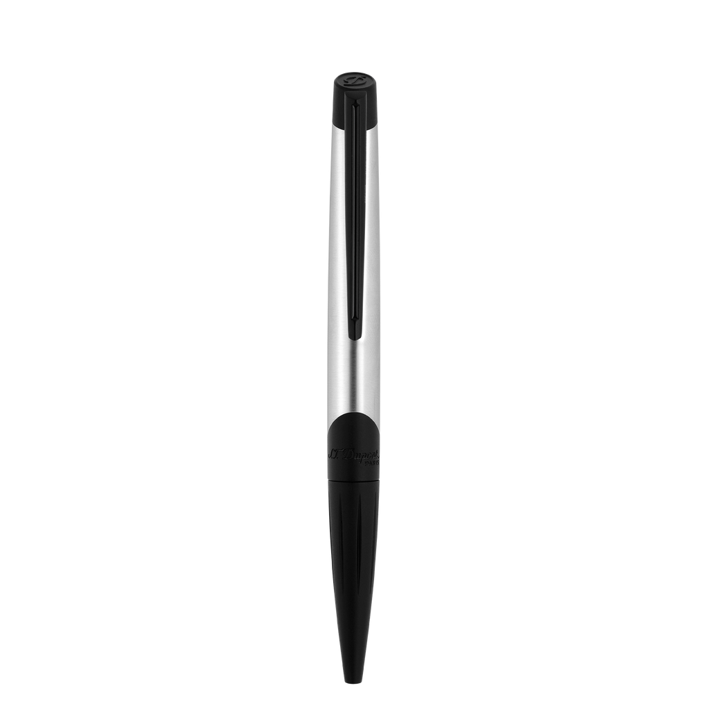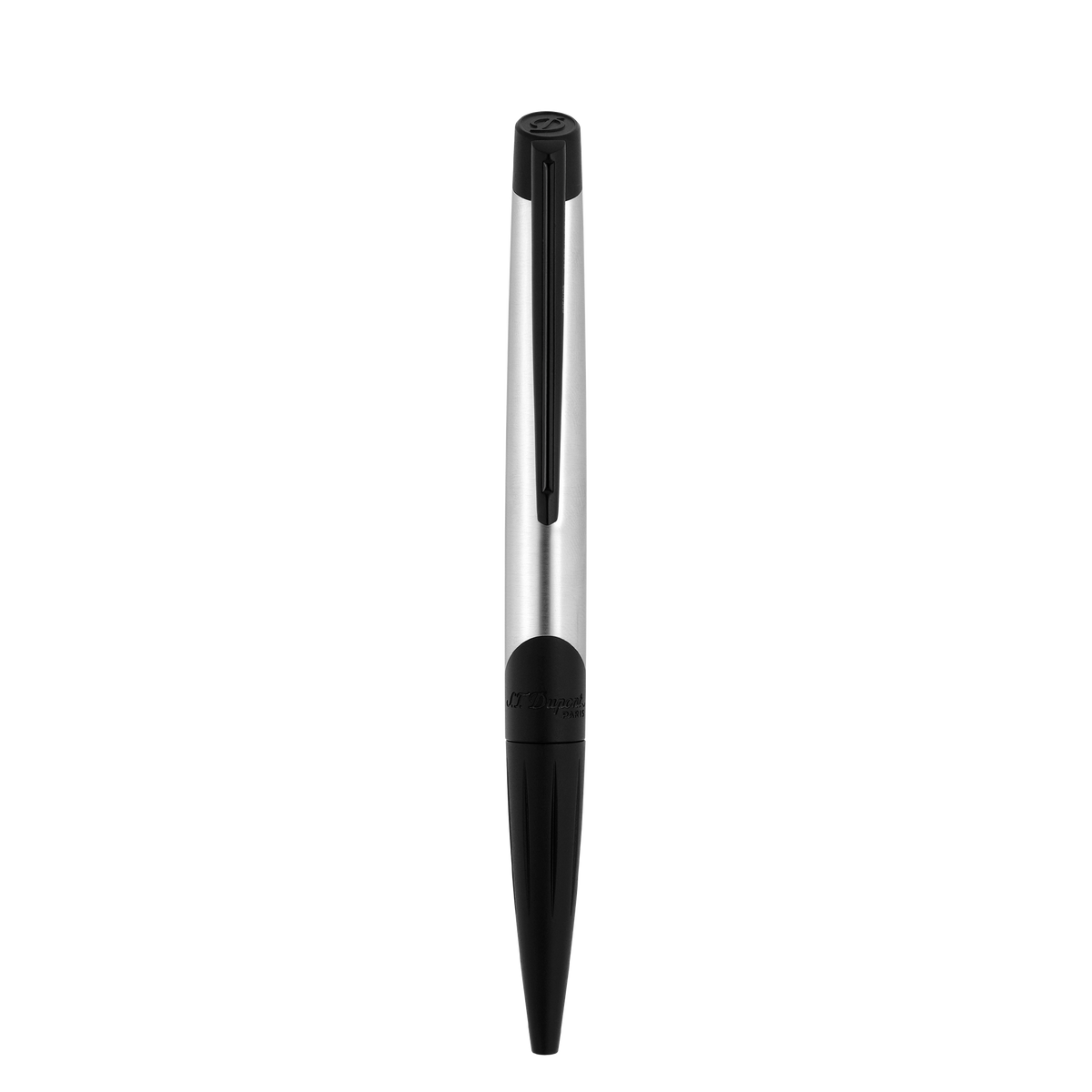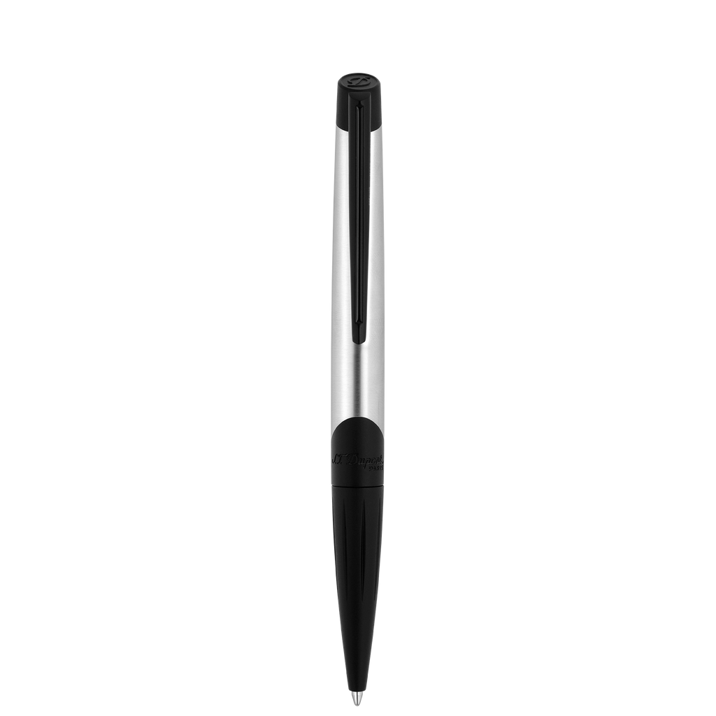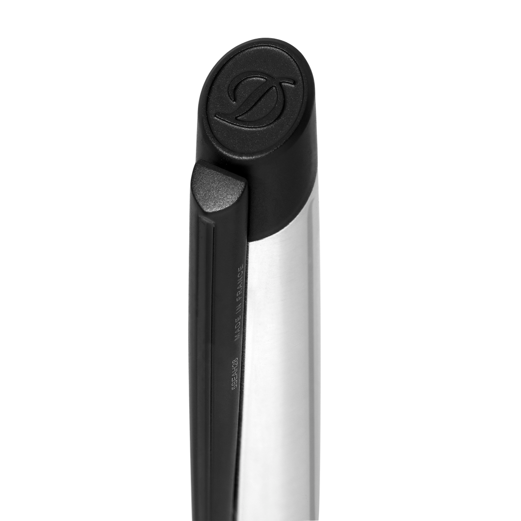 Der S.T. Dupont Défi Kugelschreiber aus der Millennium-Kollektion vereint modernes Design mit der traditionellen Handwerkskunst des französischen Luxushauses. Die Kombination aus gebürstetem Chrom und mattschwarzen Elementen verleiht dem Schreibgerät eine sportlich-technische Anmutung, die durch dynamische Linien und funktionale Konturen unterstrichen wird.