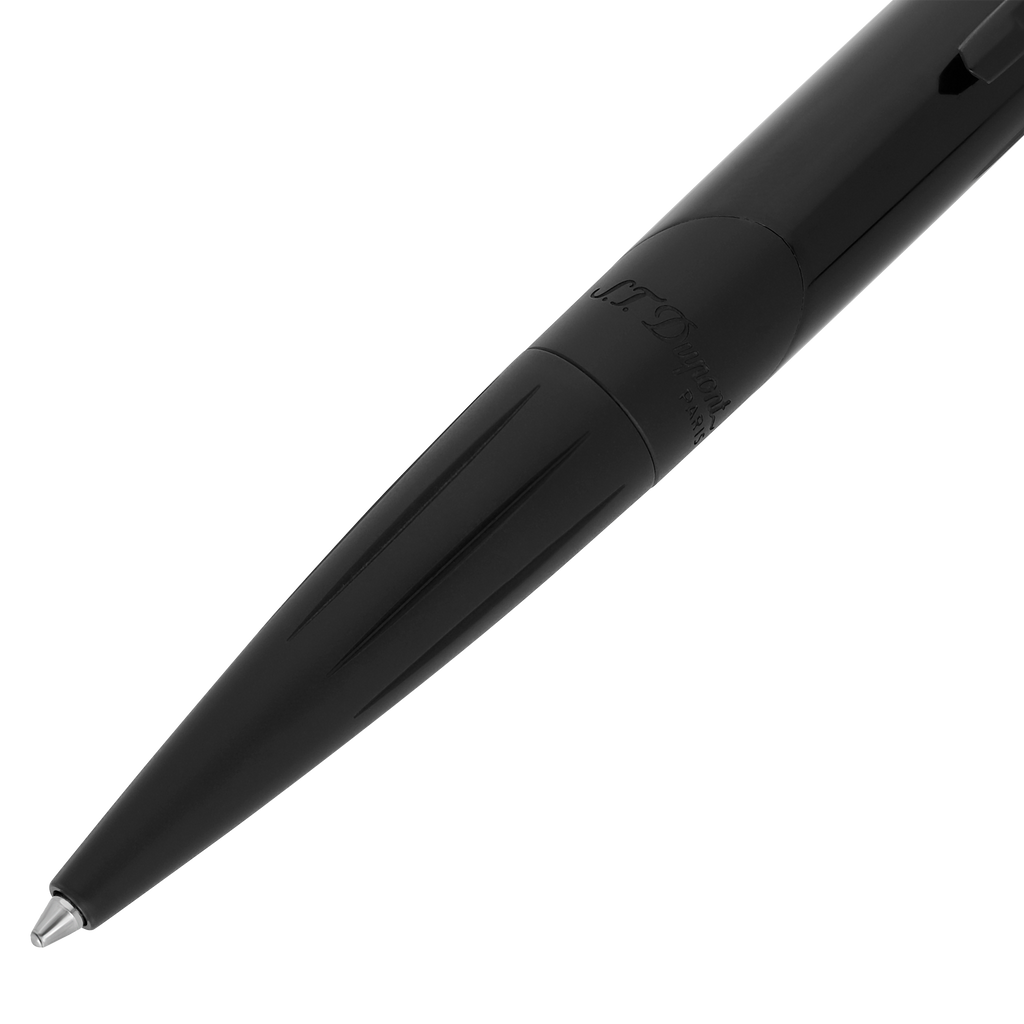 Der S.T. Dupont Défi Kugelschreiber Millennium vereint modernes Design mit traditioneller Handwerkskunst. Die Kombination aus glänzendem und mattem Schwarz verleiht diesem Schreibgerät eine markante, zeitgemäße Ästhetik, die durch die präzise Verarbeitung und die hochwertige Lackierung auf einem robusten Metallkorpus unterstrichen wird.