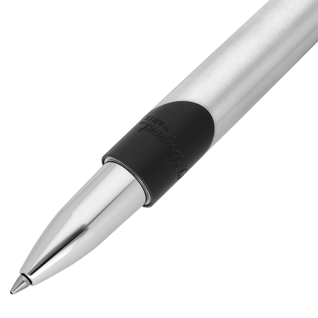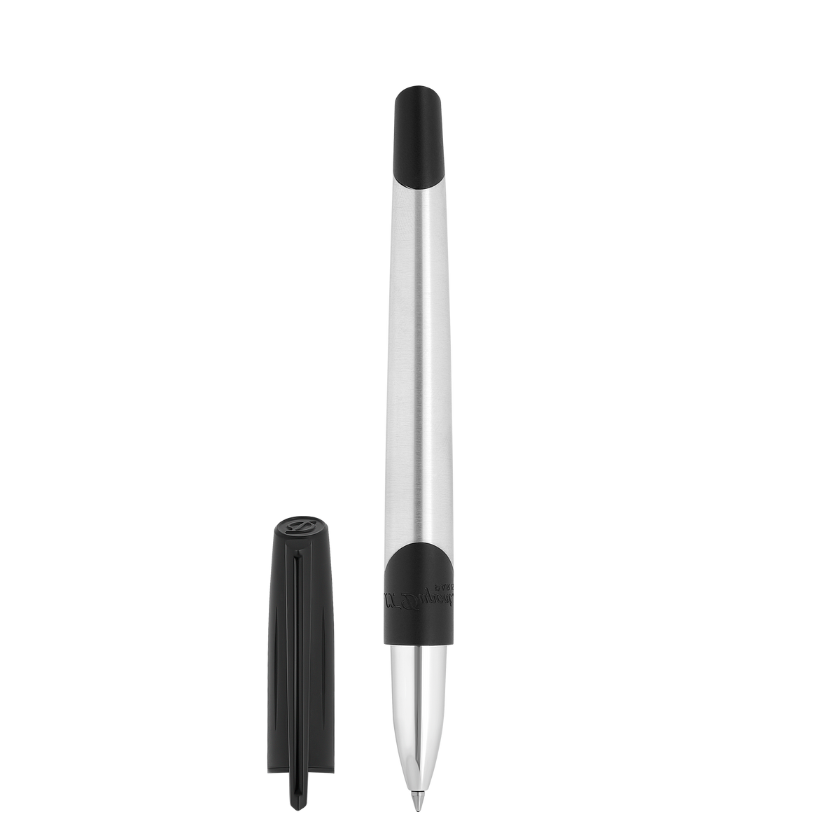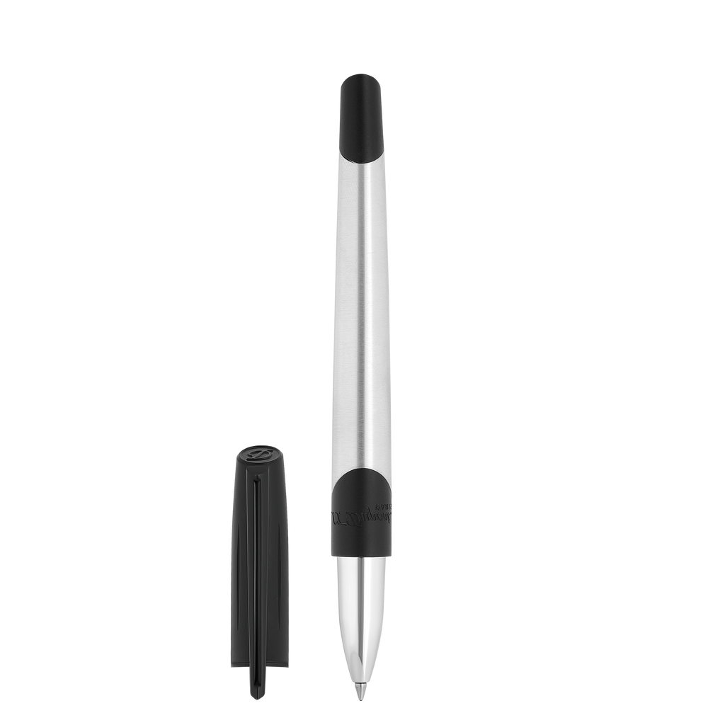 Der S.T. Dupont Défi Tintenroller aus der Défi Millennium Kollektion vereint modernes Design mit technischer Präzision. Die Kombination aus gebürstetem Chrom und mattschwarzem Finish verleiht dem Schreibgerät einen markanten Bicolor-Look, der durch die metallische Konstruktion unterstrichen wird.