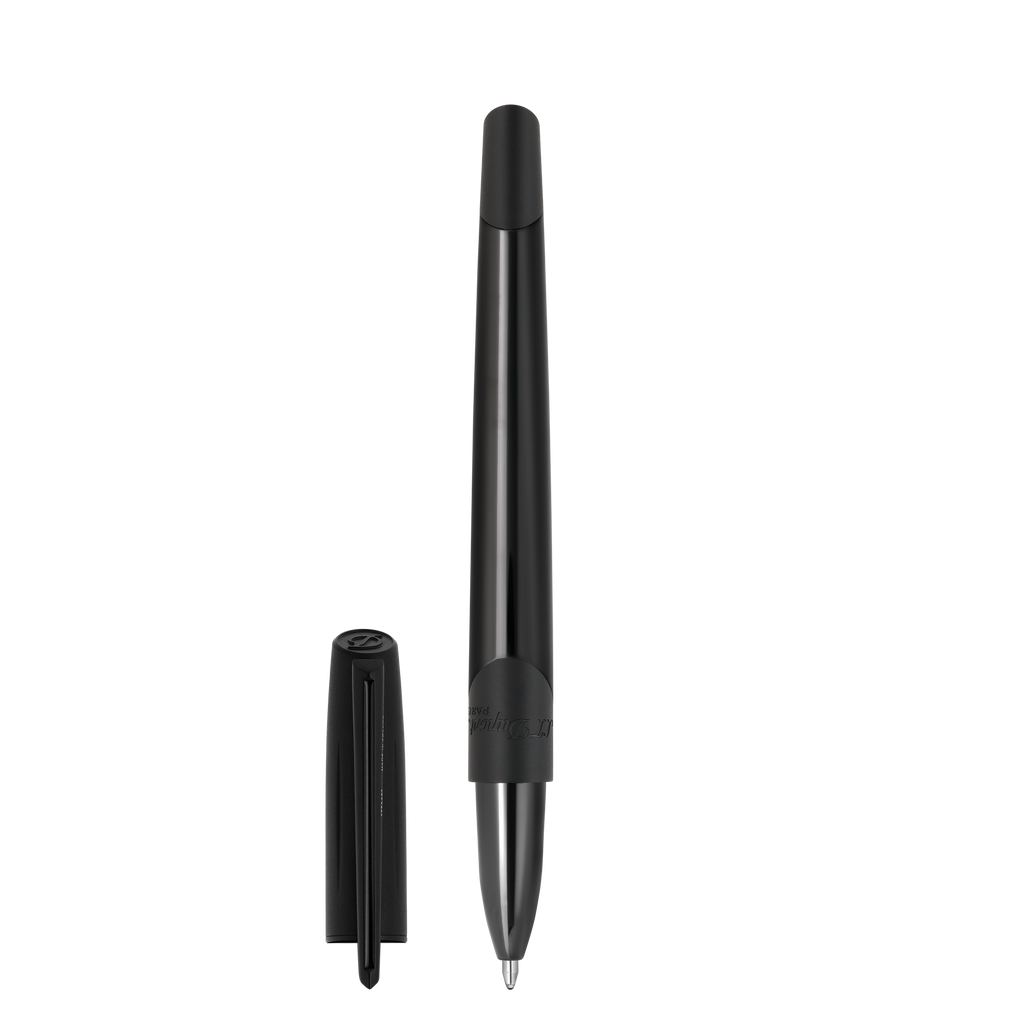 Der S.T. Dupont Défi Tintenroller aus der Défi Millennium Kollektion verkörpert eine moderne, sportliche Eleganz. Mit seinem Metallkorpus und dem widerstandsfähigen Lack-Finish in glänzendem und mattem Schwarz bietet er eine beeindruckende Haptik und eine robuste Oberfläche, die den Alltag mühelos meistert.