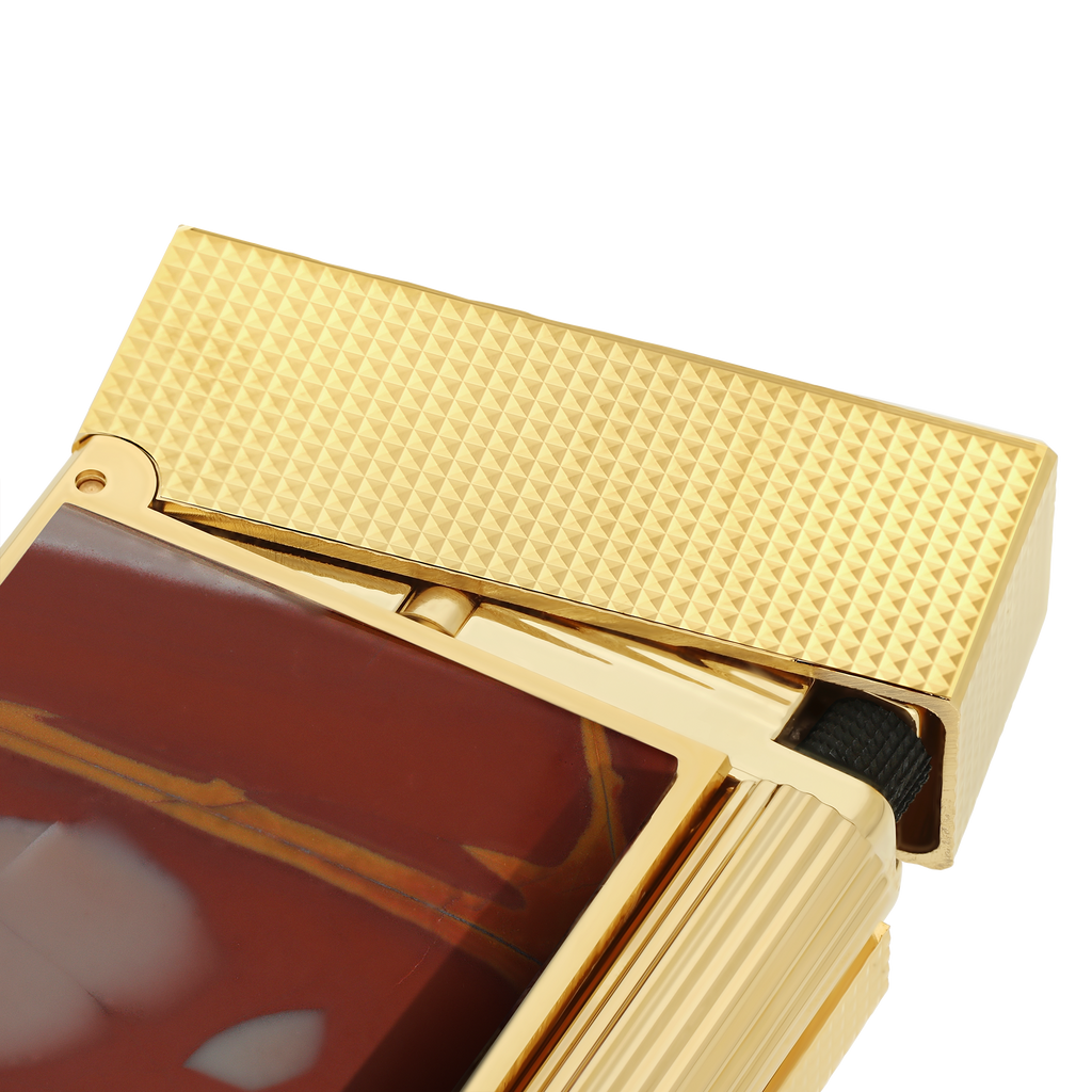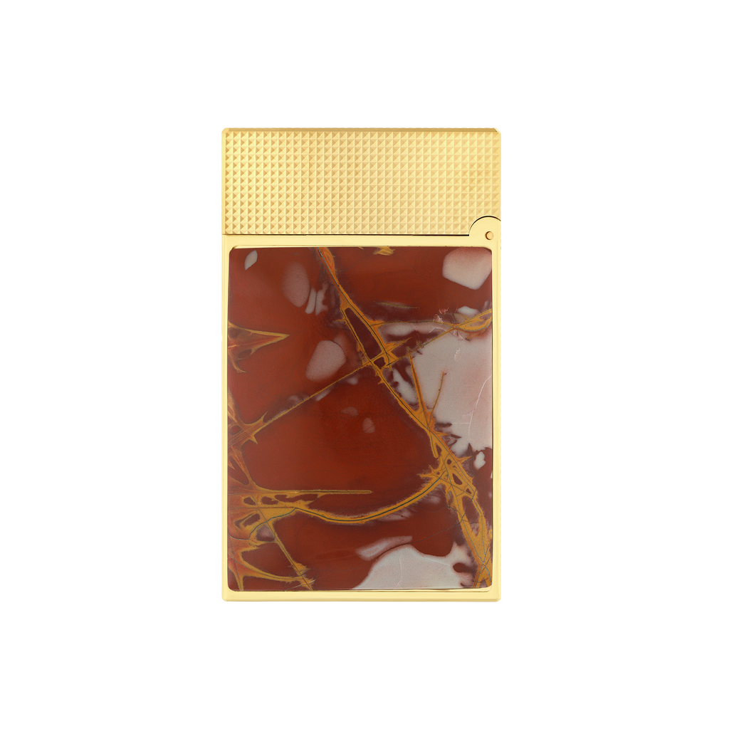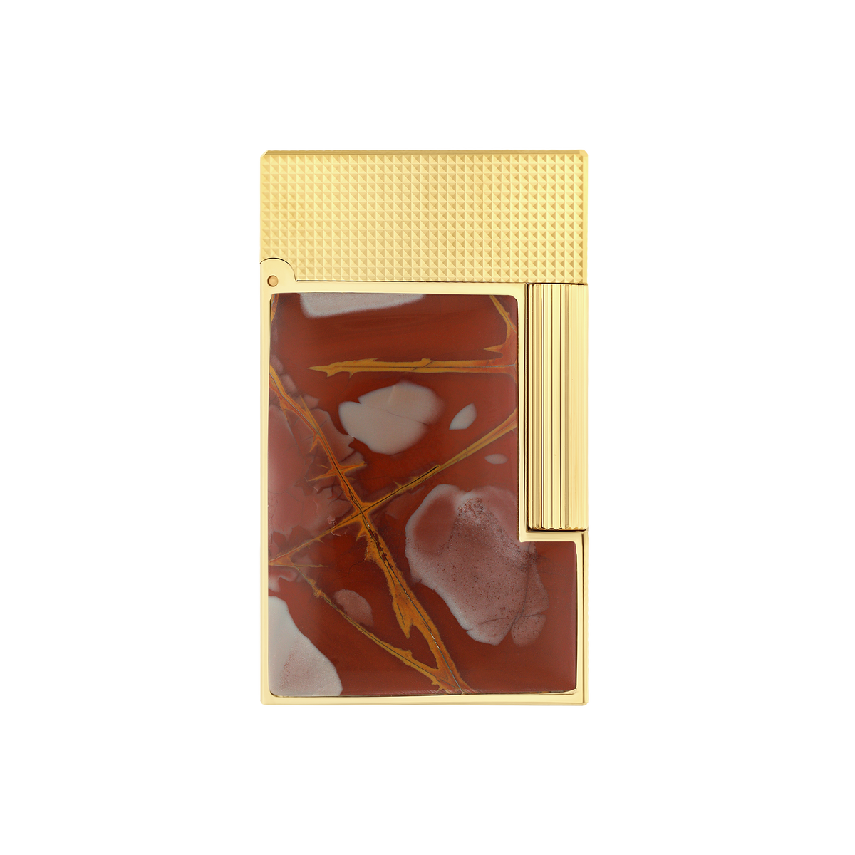 Das S.T. Dupont Ligne 2 Stone of Fortune Feuerzeug vereint die ikonische Konstruktion der Ligne 2 mit der natürlichen Schönheit des Noreena-Jaspis. Jeder Stein ist einzigartig in seiner Maserung und Farbgebung, was jedes Exemplar zu einem Unikat macht. Der hochglanzpolierte Metallkorpus ergänzt das warme, erdige Farbspektrum des Steins perfekt.