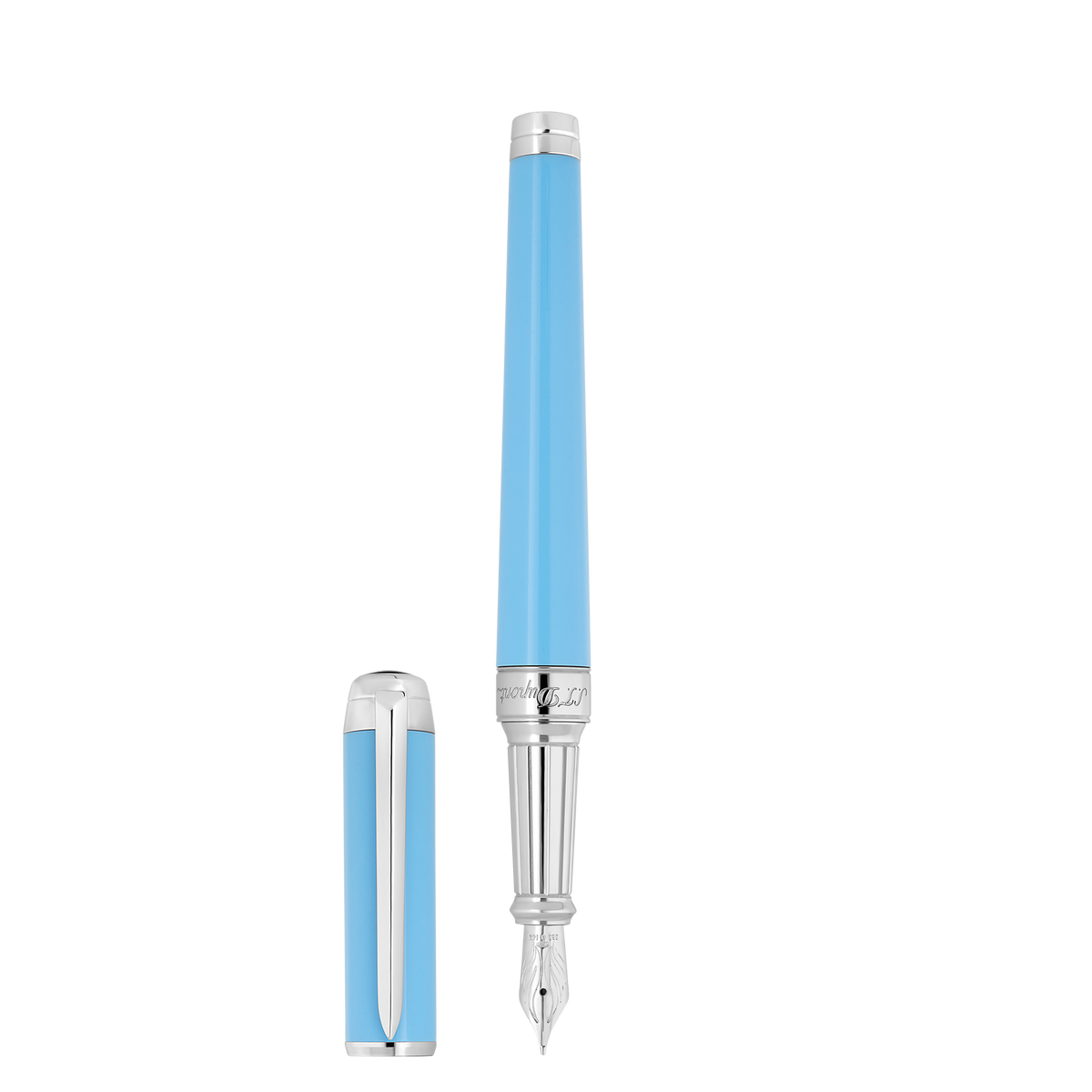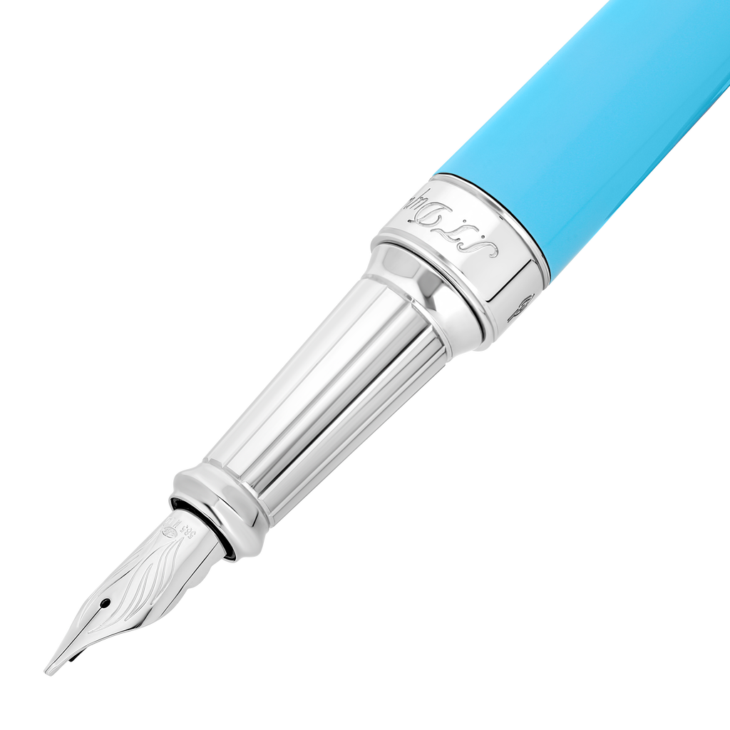 Der S.T. Dupont Line D Eternity XL Füllfederhalter in Türkis verkörpert die Essenz französischer Handwerkskunst. Mit einem Korpus aus Metall, der durch feine Guillochierung und mehrere Schichten transluzenten Naturlacks veredelt wird, bietet er ein faszinierendes Spiel aus Tiefe und Licht.