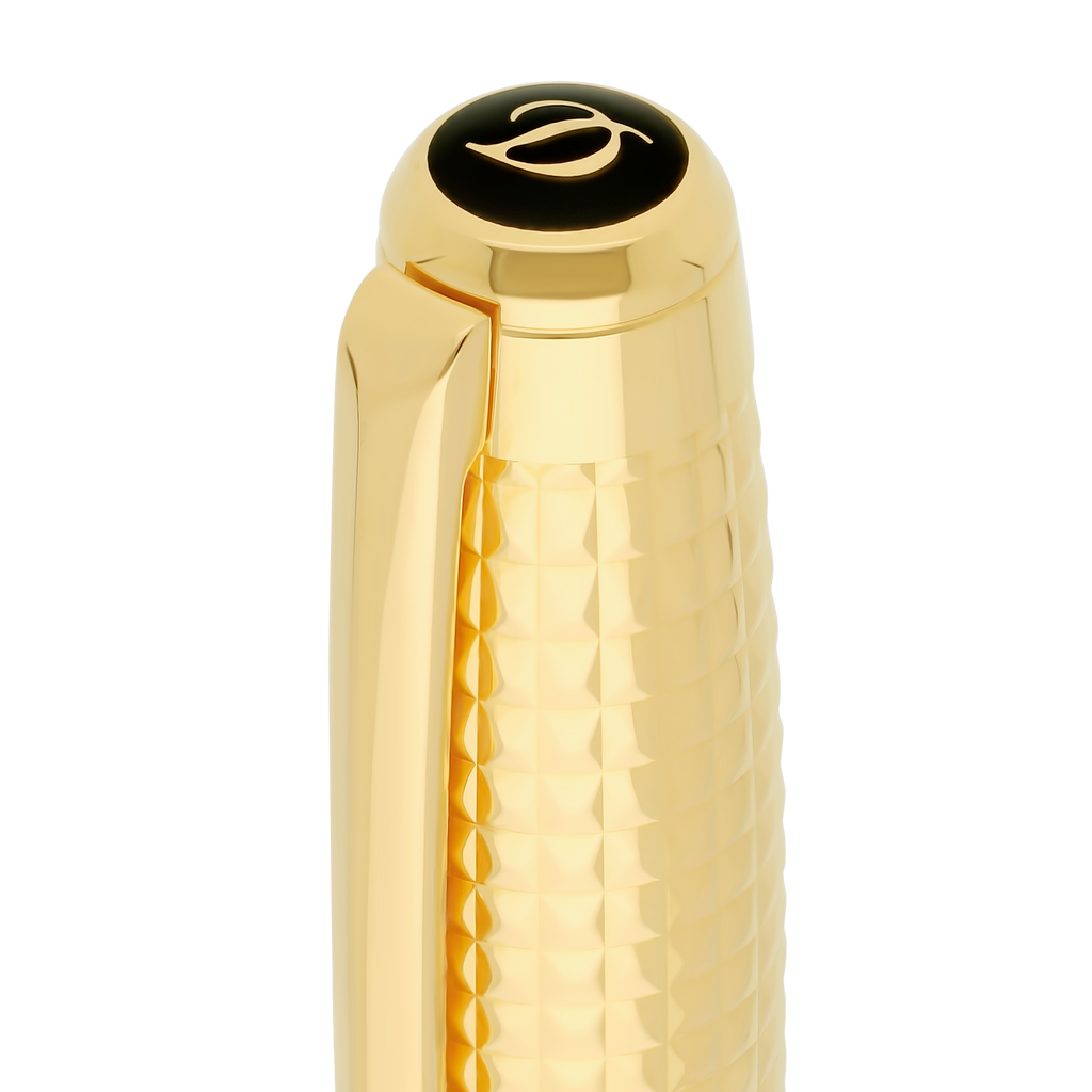 Der S.T. Dupont Füllfederhalter Ligne D Éternité in der „Atelier“-Ausführung verkörpert die Essenz französischer Handwerkskunst. Mit seiner markanten Diamantspitzen-Guilloche und dem edlen goldfarbenen Finish zieht er alle Blicke auf sich. Die massive Goldfeder sorgt für ein unvergleichlich geschmeidiges Schreibgefühl, während das ausgewogene Gehäuse eine ruhige Führung unterstützt.