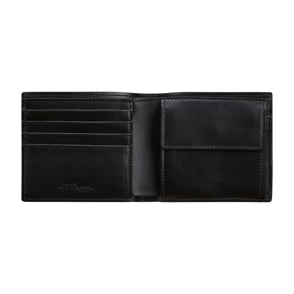 Die S.T. Dupont Firehead Geldbörse in Schwarz ist ein Meisterwerk der Lederverarbeitung, das die ikonische Firehead-Prägung der Marke aufgreift. Diese Prägung verleiht der Geldbörse ein facettiertes Relief, das das Licht auf elegante Weise reflektiert und so für einen edlen Lichteffekt sorgt.