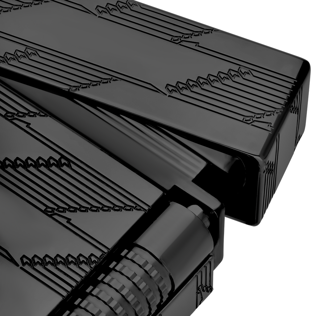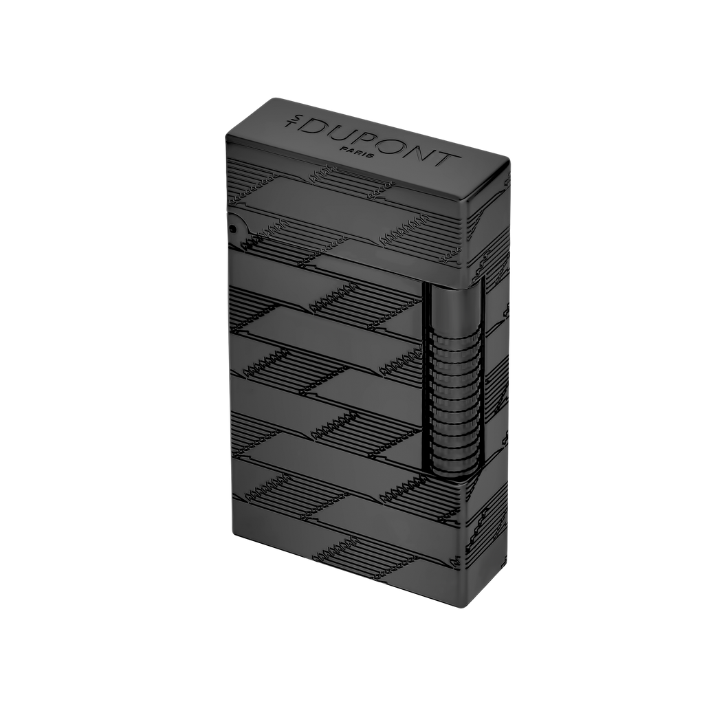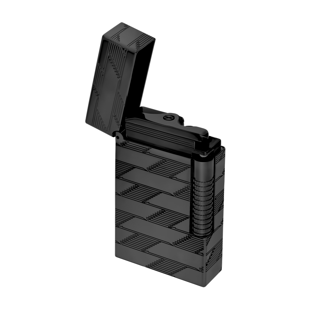 Das Le Grand Dupont Monogram Feuerzeug von S.T. Dupont vereint luxuriöses Design mit technischer Raffinesse. Der massive Metallkorpus ist mit einem fein guillochierten Monogramm-Motiv in elegantem Schwarz veredelt, das je nach Lichteinfall subtil schimmert. Polierte Metallakzente setzen klare Kontraste und unterstreichen die hochwertige Anmutung.