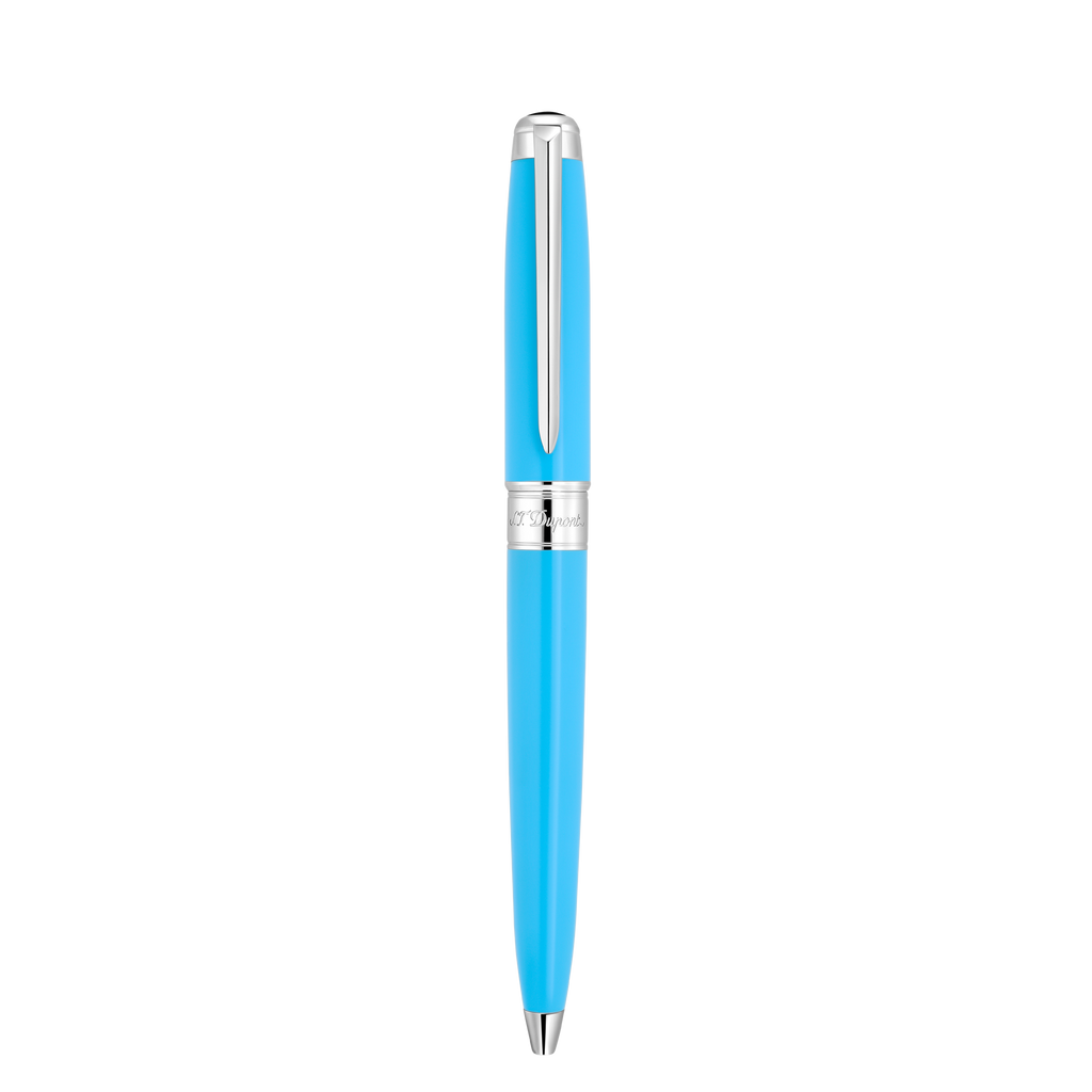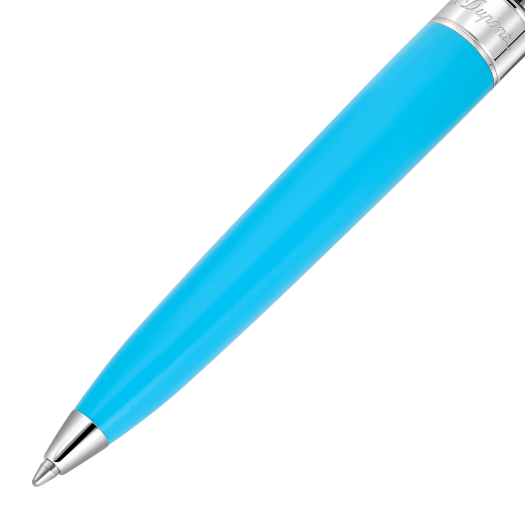 Der S.T. Dupont Kugelschreiber aus der Line D Ewigkeit Kollektion verkörpert die perfekte Symbiose aus traditioneller Handwerkskunst und modernem Design. Der massive Messingkern ist mit einem transluzenten, mehrschichtig aufgetragenen Naturlack in intensivem Türkis veredelt, der die darunterliegende Guillochierung durchschimmern lässt und so ein faszinierendes Spiel von Licht und Farbe erzeugt.