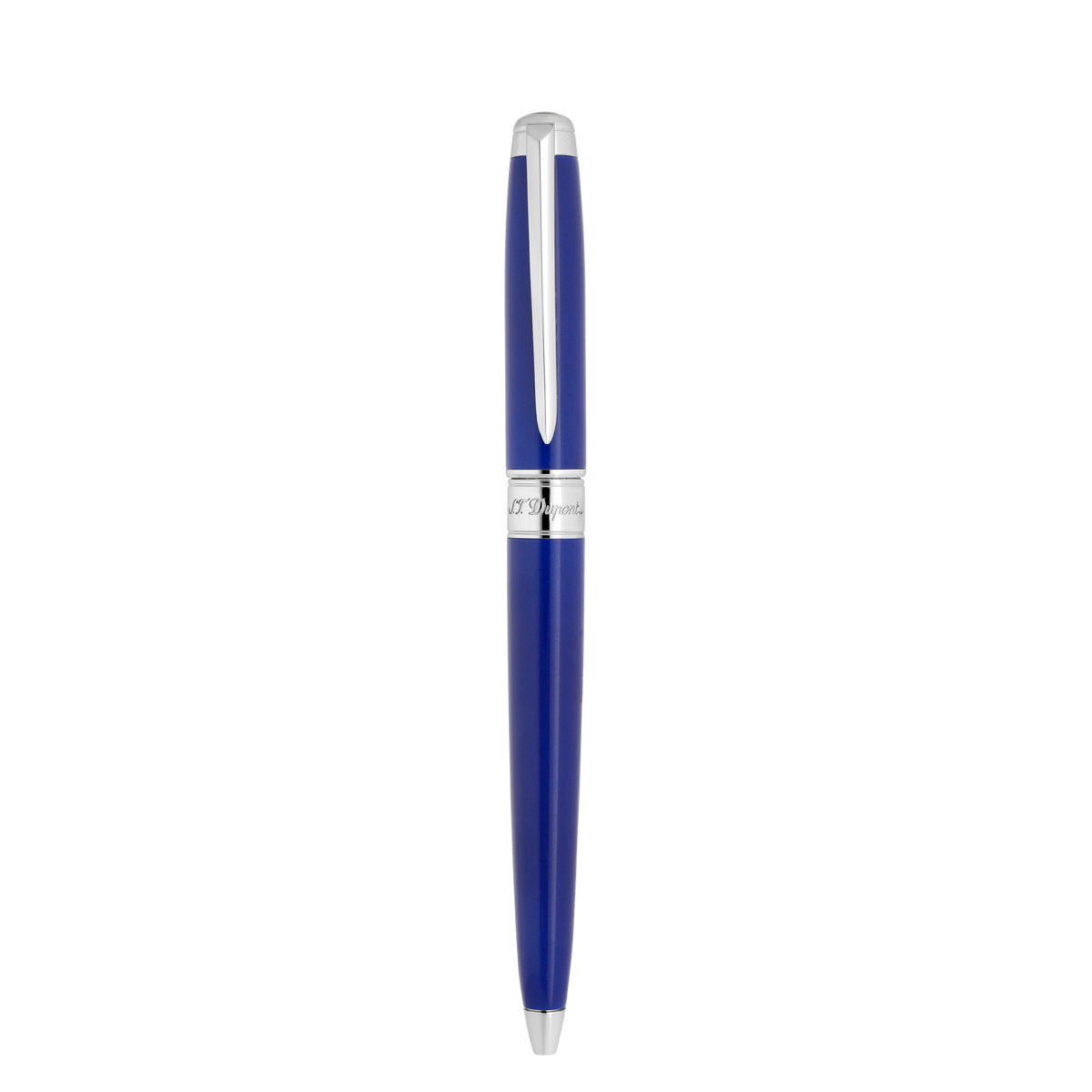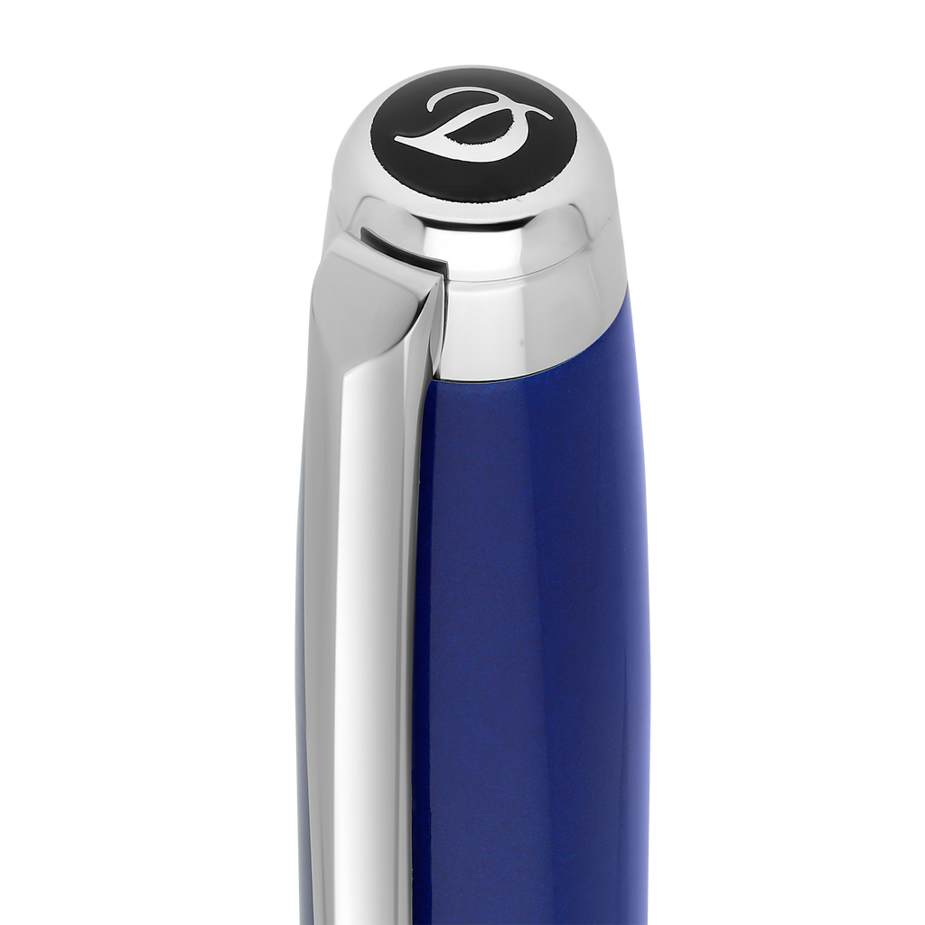 Der Kugelschreiber aus der Line D Ewigkeit Kollektion von S.T. Dupont verkörpert moderne Eleganz und traditionelle Handwerkskunst. Mit einem soliden Metallkorpus und einer tiefblauen, in mehreren Schichten aufgetragenen Lackoberfläche, bietet er eine beeindruckende visuelle Tiefe. Die palladiumbeschichteten Beschläge sorgen für einen brillanten Glanz und hohe Widerstandsfähigkeit.