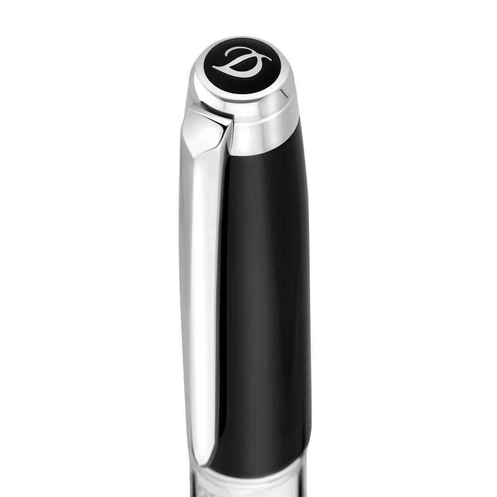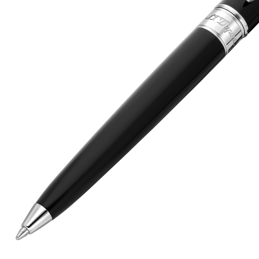 Der S.T. Dupont Kugelschreiber aus der Line D Ewigkeit Kollektion verkörpert zeitlose Eleganz und französische Handwerkskunst. Der Schaft aus Metall ist mit tiefschwarzem Natur-Lack veredelt, der von Hand aufgetragen und poliert wird, während die palladiumbeschichteten Beschläge einen luxuriösen Akzent setzen.