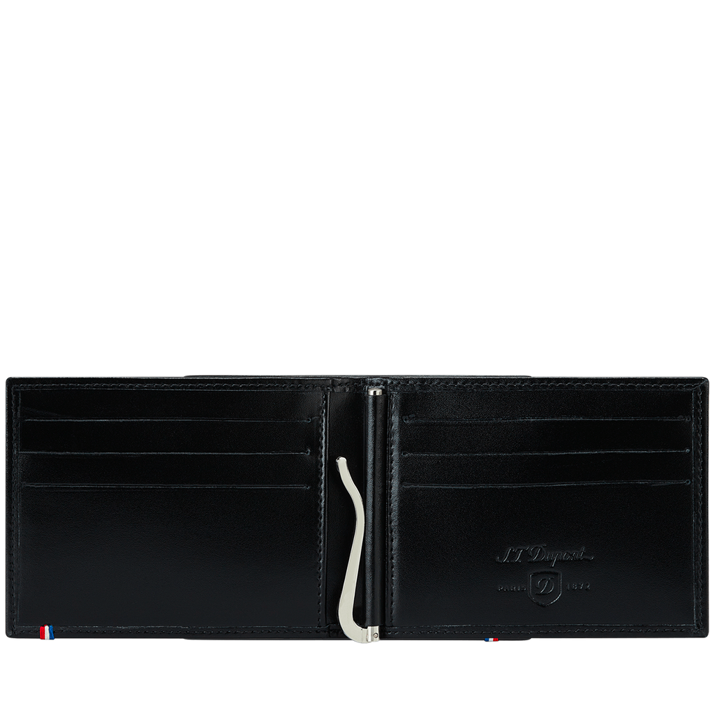 Die Line D Brieftasche von S.T. Dupont verkörpert zeitlose Eleganz und Funktionalität. Gefertigt aus hochwertigem schwarzem Glattleder, bietet sie eine glatte Oberfläche und eine angenehme Haptik. Die präzise Verarbeitung der Kanten und Nähte unterstreicht die Qualität, während dezente Prägungen die luxuriöse Anmutung betonen.