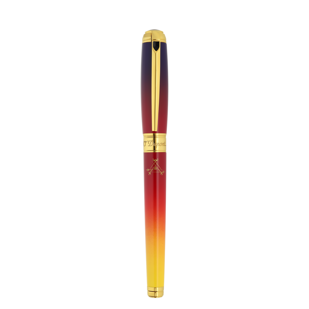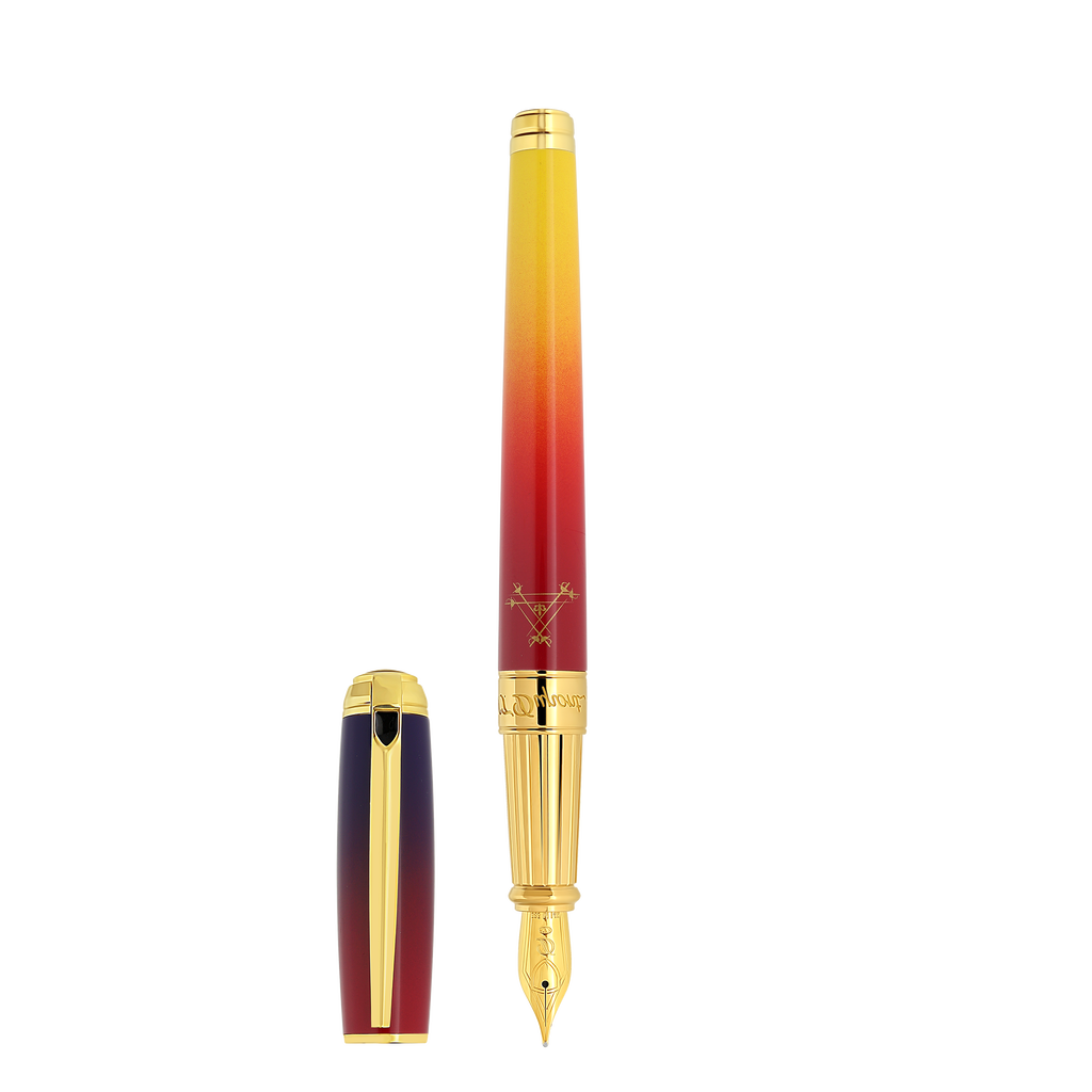 Der S.T. Dupont Line D Füllfederhalter in der Montecristo „Aurore“ Edition vereint meisterhafte Handwerkskunst mit luxuriösem Design. Gefertigt in Frankreich, besticht dieser Füllfederhalter durch seinen metallischen Korpus, der mit mehrschichtigem, handpoliertem Natur-Lack veredelt ist. Die warmen Gelb- bis Orangetöne des „Aurore“-Designs spiegeln die Morgendämmerung wider und verleihen dem Schreibgerät eine beeindruckende Farbtiefe.