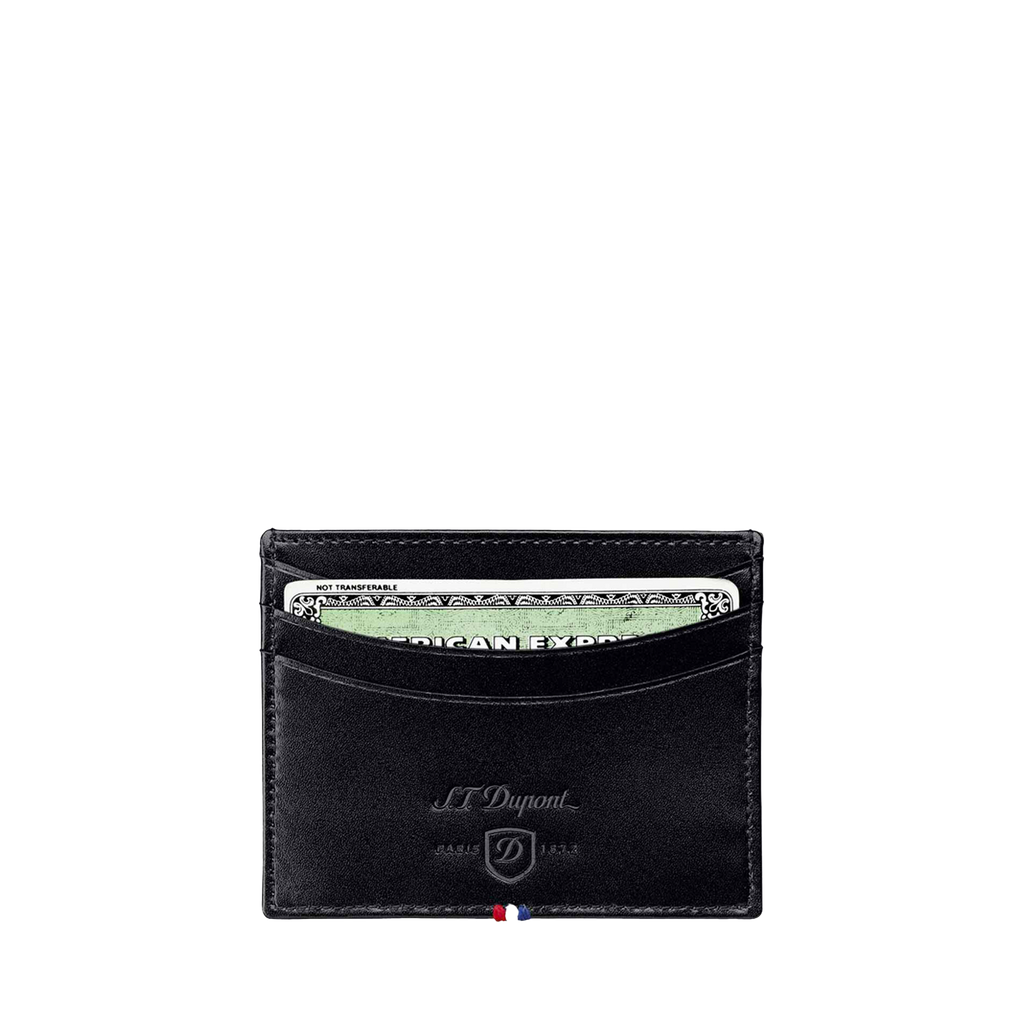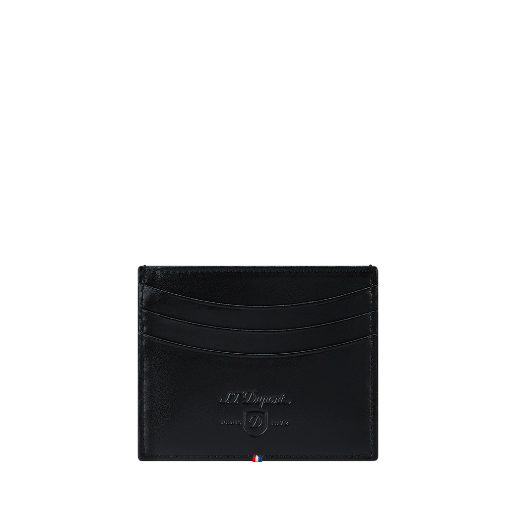 Das S.T. Dupont Line D Kartenetui aus Glattleder verkörpert zeitlose Eleganz und Funktionalität. Gefertigt aus hochwertigem, schwarzem Glattleder, bietet es eine glatte Haptik und eine langlebige Struktur, die für den täglichen Gebrauch ausgelegt ist. Die präzise Verarbeitung der Kanten und Nähte unterstreicht die luxuriöse Anmutung, die für die Line D Lederwaren charakteristisch ist.