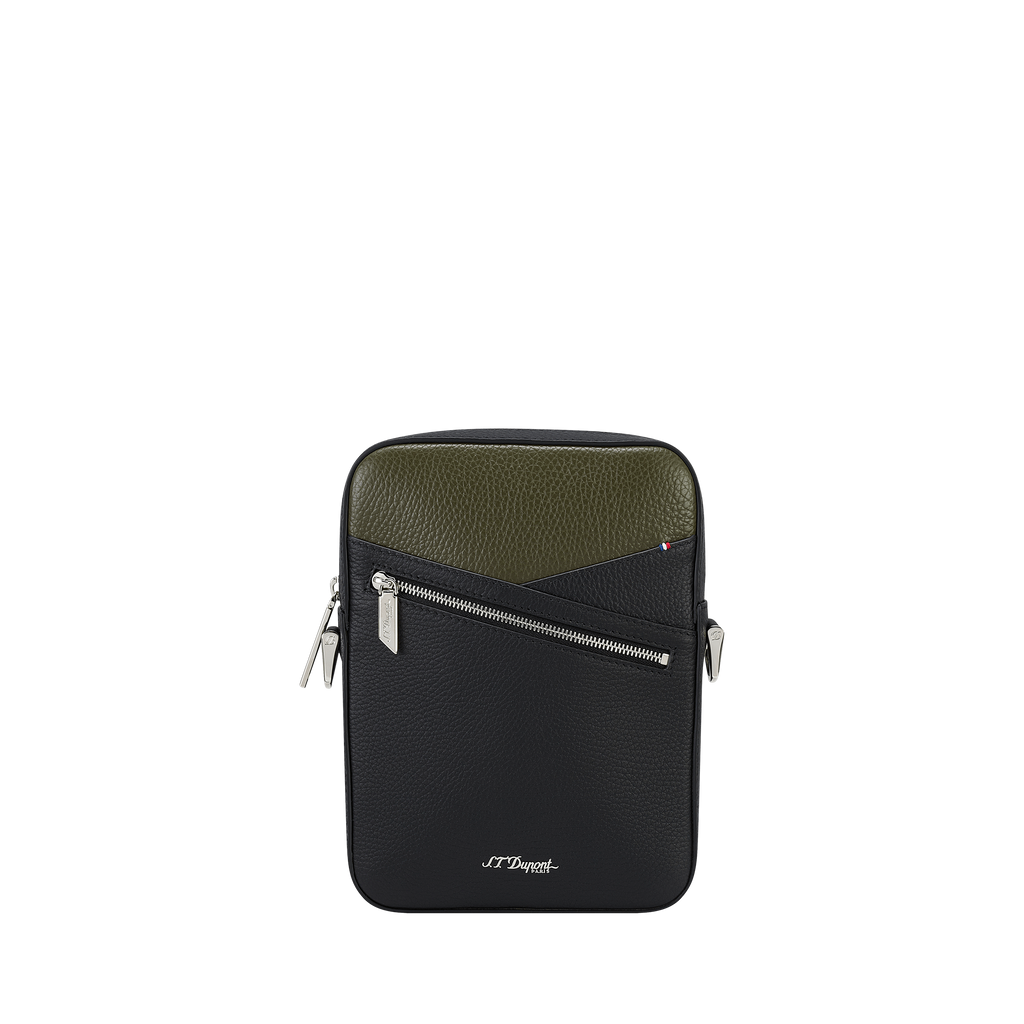 Die NEO Capsule Umhängetasche von S.T. Dupont vereint urbanen Stil mit luxuriöser Funktionalität. Die zweifarbige Gestaltung in Khaki und Schwarz verleiht der Tasche einen modernen Look, der durch das dezente Branding des Hauses Dupont unterstrichen wird.