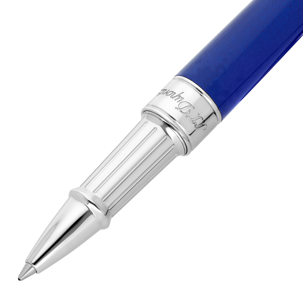 Der S.T. Dupont Line D Eternity Rollerball in Blau und Palladium ist ein Meisterwerk der Schreibkunst, das die Tradition und das Erbe der Maison seit 1872 verkörpert. Die exquisite Kombination aus tiefblauem Naturlack und palladinierten Akzenten verleiht diesem Schreibgerät eine unvergleichliche Eleganz und Langlebigkeit.