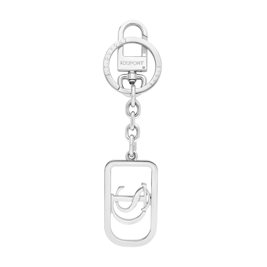 Der S.T. Dupont Schlüsselanhänger in silberfarbenem Chrom verkörpert die Essenz französischer Eleganz und Handwerkskunst. Mit seinem hochglanzpolierten Finish und der präzisen Logo-Gravur ist er ein stilvolles Accessoire für den anspruchsvollen Nutzer.