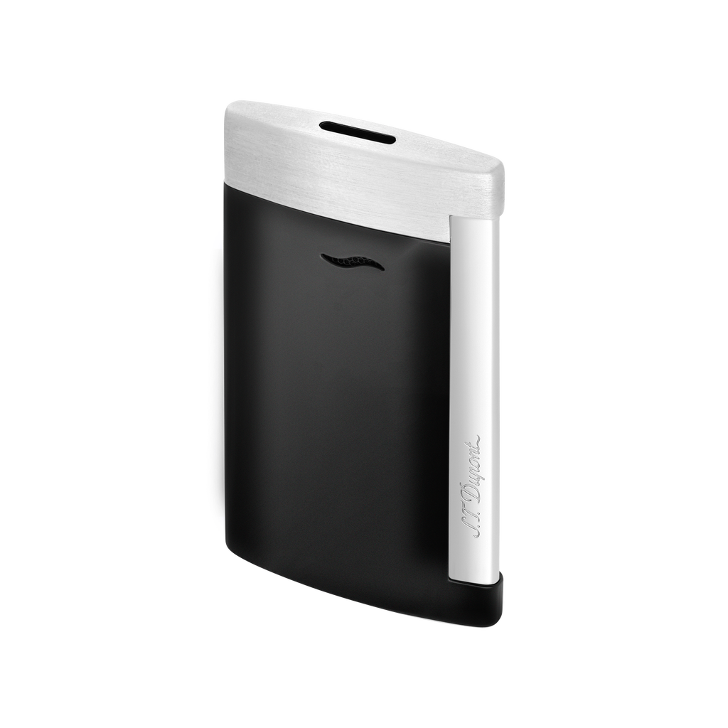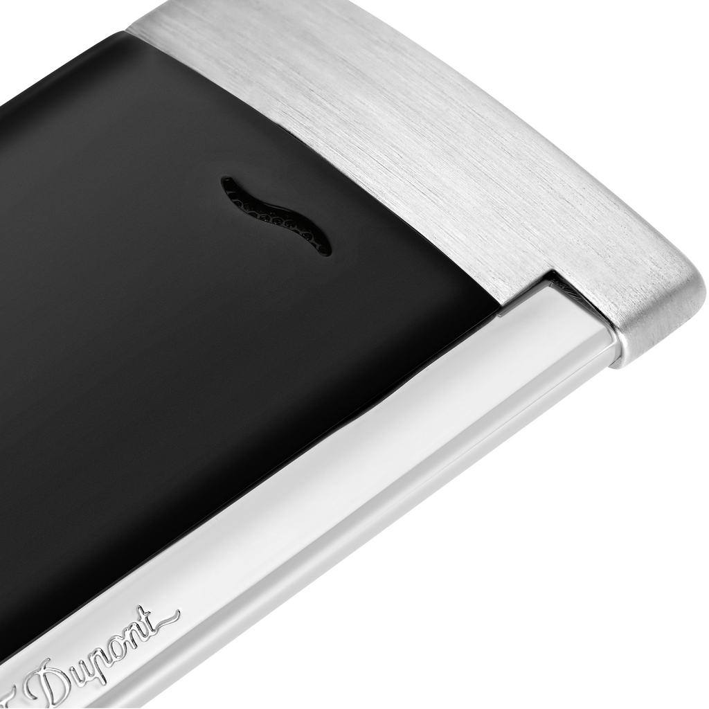 Das S.T. Dupont Slim 7 Feuerzeug verkörpert die Essenz luxuriöser Handwerkskunst in einem ultraflachen Design. Mit nur 7 mm Tiefe bietet es eine elegante Silhouette, die sich diskret in jeder Tasche verstauen lässt. Die Kombination aus mattschwarzer Lackierung und gebürstetem Chromfinish verleiht dem Feuerzeug eine moderne, technische Anmutung.
